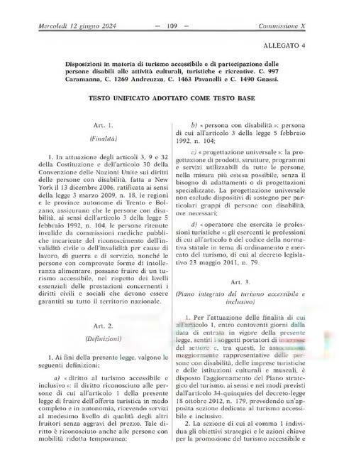 56 Accessibilità nelle attività ricreative e ludiche: testo unificato