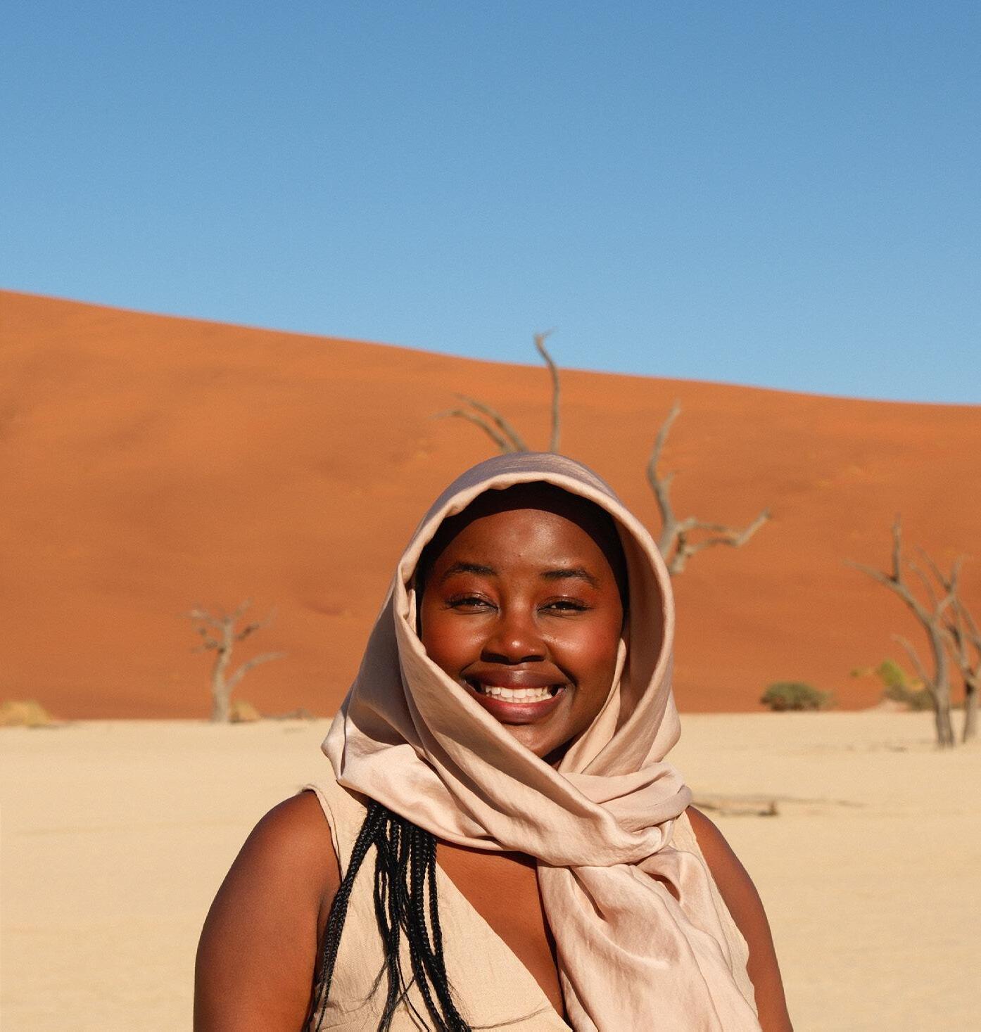 Meet Pitsi Sathekge, a South African Born Travel agent, group tour host and social media creator. Pitsi hosts group trips for solo female travellers across Africa and globally, with Namibia being one of their favourite destinations to explore and host.