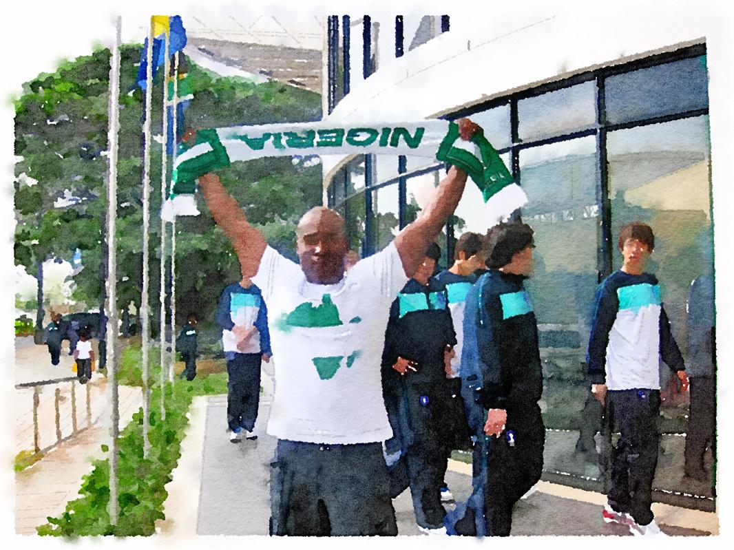 Outside the hotel stood the entire Nigerian team.