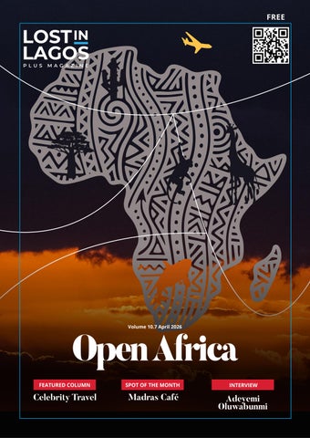 LOST IN LAGOS Volume 10.7 April 2026 Title: Open Africa FOUNDER Tannaz Bahnam PUBLISHED BY Knock Knock Lifestyle Solutions Ltd PRINTER Tee Digital Press EDITOR-IN-CHIEF Elvis Osifo EDITORS Leon Izegbu, Enemona Udile DESIGN Ernest Igbes CONTRIBUTORS Elvis Osifo, Leon Izegbu, Ernest Igbes, Enemona Udile, Mona Zutshi Opubor, Mama Spade, Pitsi Sathekge, Victoria Osomo, Precious Ibeh, Ijeoma Egbo, Queen Bethia, Redlane Travels, Travel with BWW, Favour Onyeoziri, Travel with Ijem, Pelu Awofeso, Karen Augusta, Esther Okorougo, Favour Olusayo, Angel Whyte, Ijeoma Blessing, Aanya Chugani, Aliu Ozozoma, Adeyemi Oluwabunmi, Akpore Oghenemarho, Akoko Restaurant, Chef Stephen, Adaeze Obi Obasi INNER COVER: Adeyemi Oluwabunmi