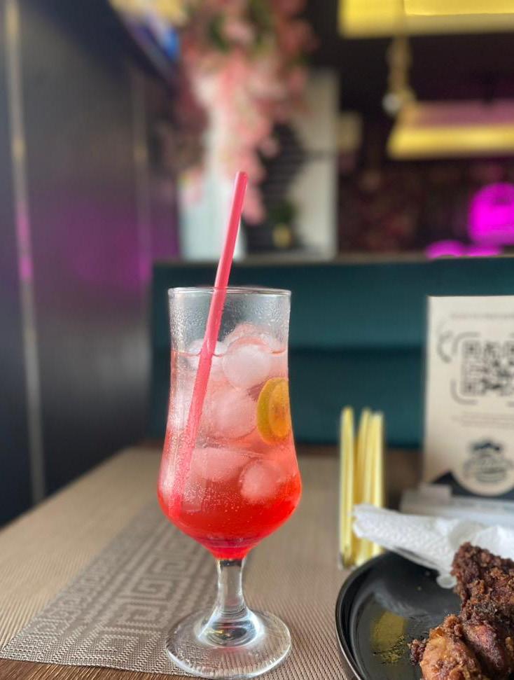 The Strawberry Cooler Mocktail was exceptional, refreshing, wellbalanced, served at the perfect temperature with a nice presentation. The quantity was adequate and satisfying, enough to douse the oiliness of the chicken and allowed me to enjoy the meat pie. Although the menu indicated a hint of mint, sliced lime was used