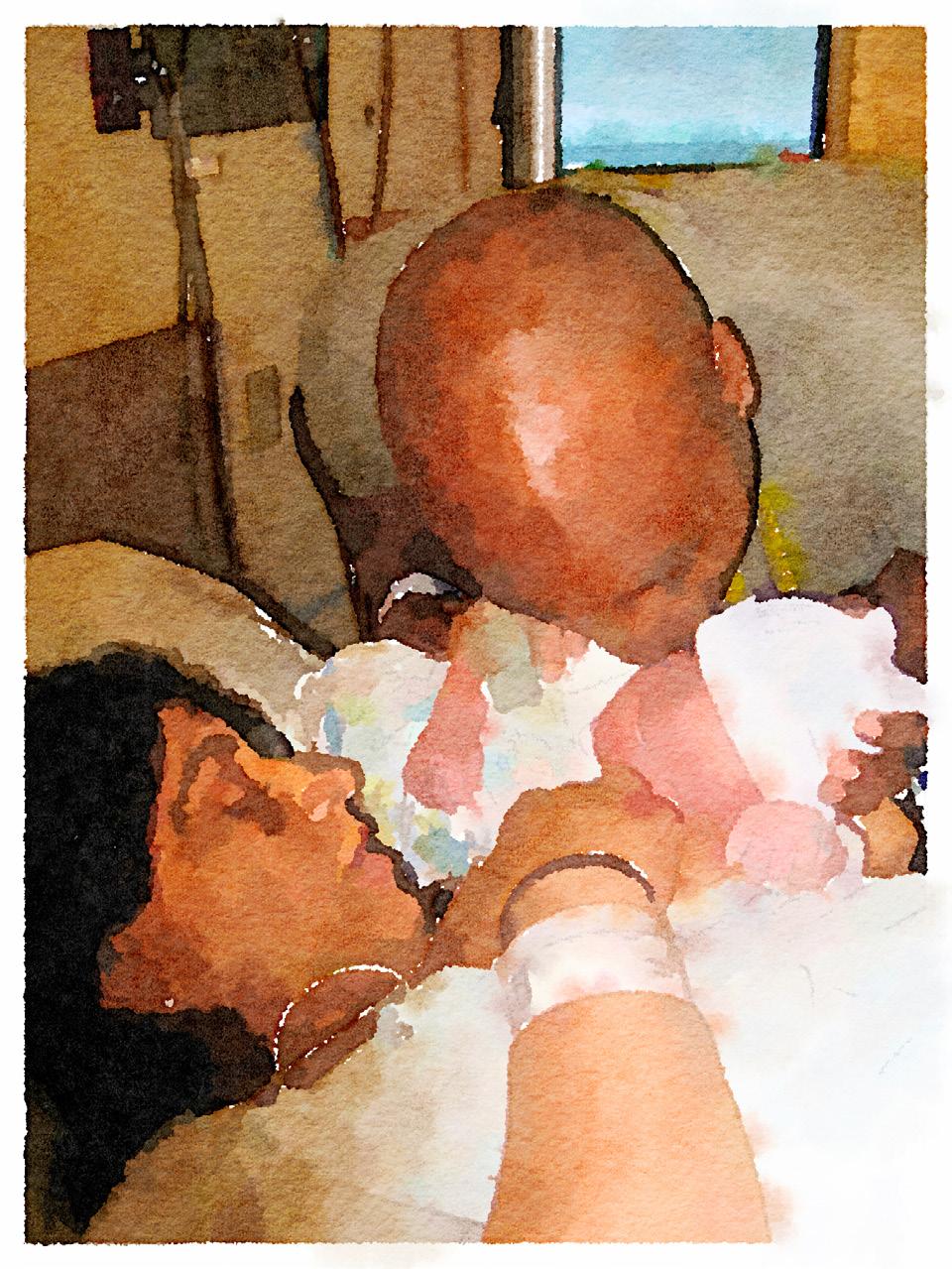 Now our baby is grown. He studies at the school where I teach. I stay late after the workday ends and watch him play football with the senior boys’ team. He and his teammates are graceful, strapping young men, quick, clever and athletic. I sit outside