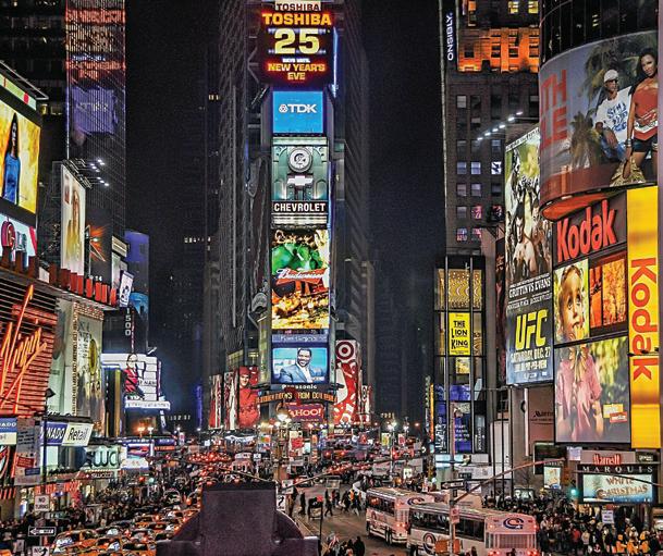 El primer anuncio luminoso de la ciudad de Nueva York, y de todo Estados Unidos, fue instalado sobre la fachada norte del Hotel Cumberland.