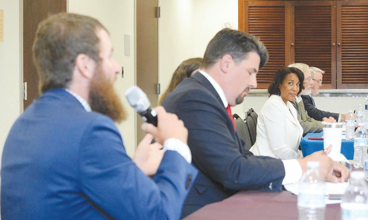 Candidates for Board of Supervisors take part in an Aug. 9 forum at the Ida Lee Park Recreation Center, organized and hosted by the Loudoun Farm Bureau and the Loudoun County Equine Alliance.