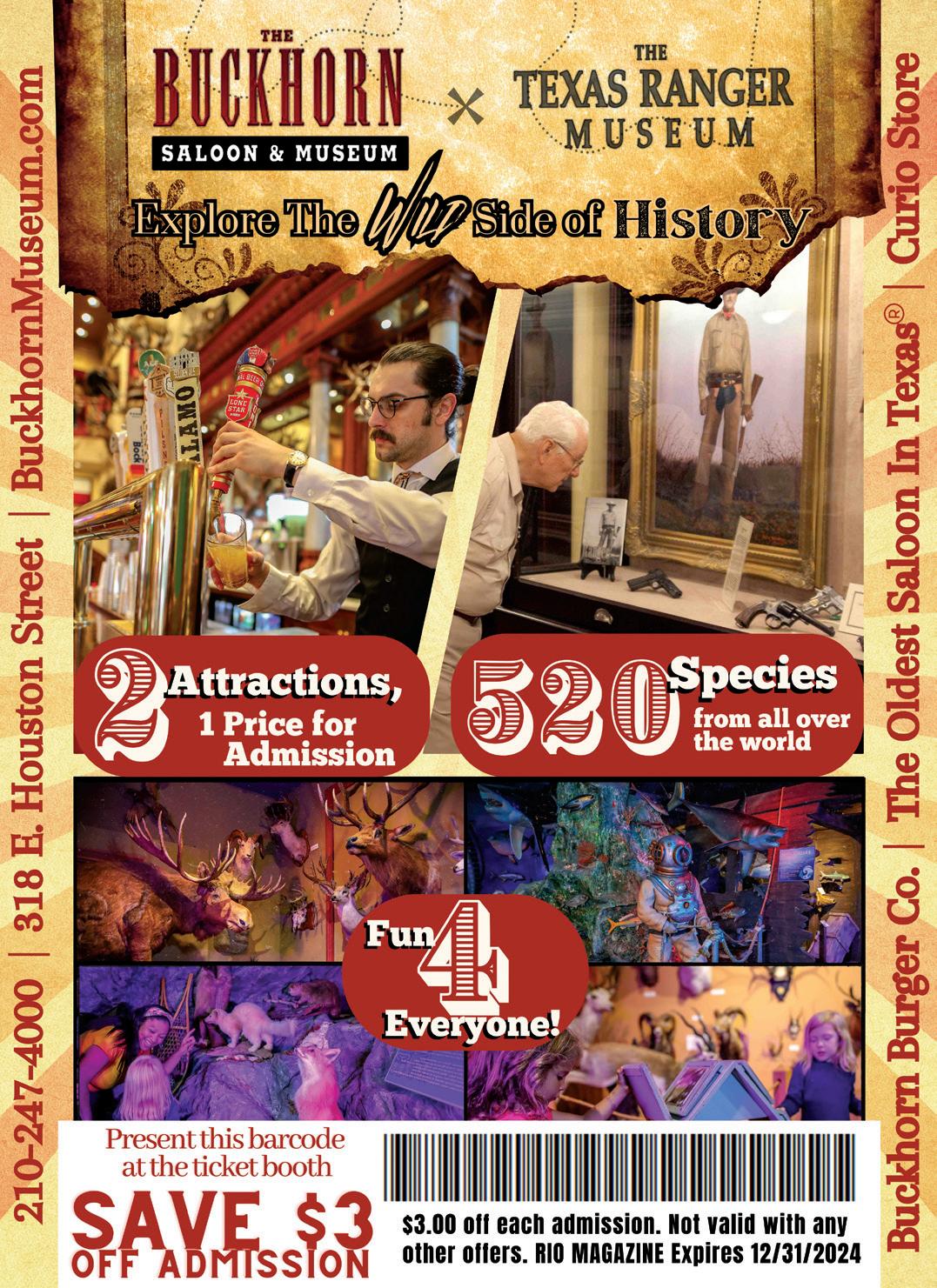 Rio Magazine is published by Traveling Blender, LLC. (Publisher) on behalf of Visit San Antonio. Reproduction in any manner in whole or in part is prohibited without the express written consent of Visit San Antonio. Material contained herein does not necessarily reflect the opinion of Visit San Antonio or its staff. Rio Magazine, the Publisher and Visit San Antonio reserve the right to edit all material for clarity and space and assumes no responsibility for accuracy, errors or omissions. Rio Magazine does not knowingly accept false or misleading advertisements or editorial nor does the Publisher or Visit San Antonio assume responsibility should such advertising or editorial appear. Articles and photos are welcome and may be submitted to our office to be used subject to the discretion and review of the Publisher and Visit San Antonio. All submissions become the property of Visit San Antonio. All Real Estate advertising is subject to the Federal Fair Housing Act of 1968, which makes it illegal to advertise “any preference limitation or discrimination based on race, color, religion, sex, handicap, familial status or national origin, or an intention to make such a preference limitation or discrimination.”