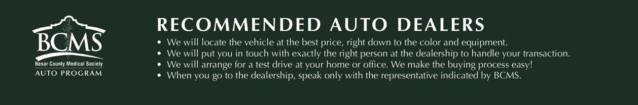 As always, call Phil Hornbeak, the Auto Program Manager at BCMS (210-301-4367) for your best deal on any new car or truck brand. Phil can also connect you to preferred financing and lease rates.