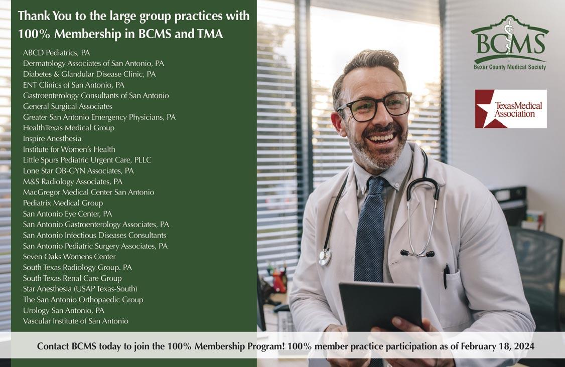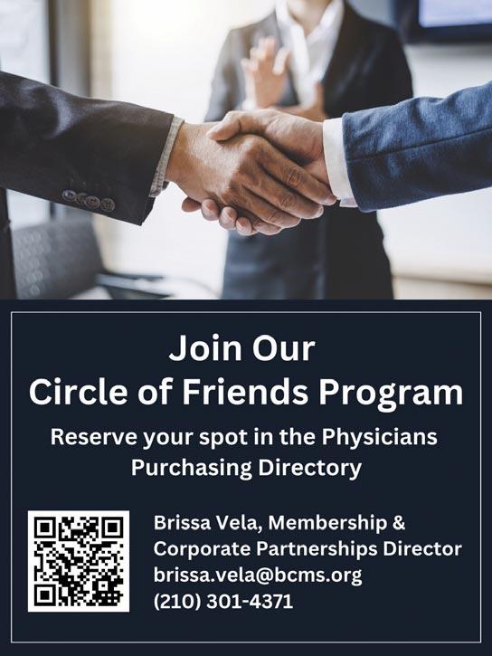 San Antonio Medicine is the official publication of Bexar County Medical Society (BCMS). All expressions of opinions and statements of supposed facts are published on the authority of the writer, and cannot be regarded as expressing the views of BCMS. Advertisements do not imply sponsorship of or endorsement by BCMS