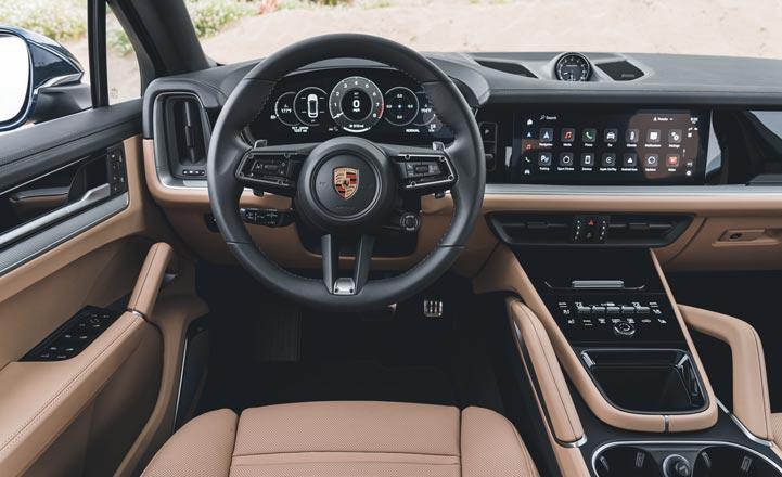 facelifted 2024 Cayenne line from prior models, the interior has been improved significantly. A new 12.6-inch curved digital instrument display sits behind the steering wheel alongside the 12.3inch central touchscreen that controls the updated PCM 6.0 infotainment system. Porsche has decided to go all-in with Apple CarPlay and Android Auto, which I think is a better choice than forcing their own system on customers who are quite happy with their phones and don’t want to learn another user interface.