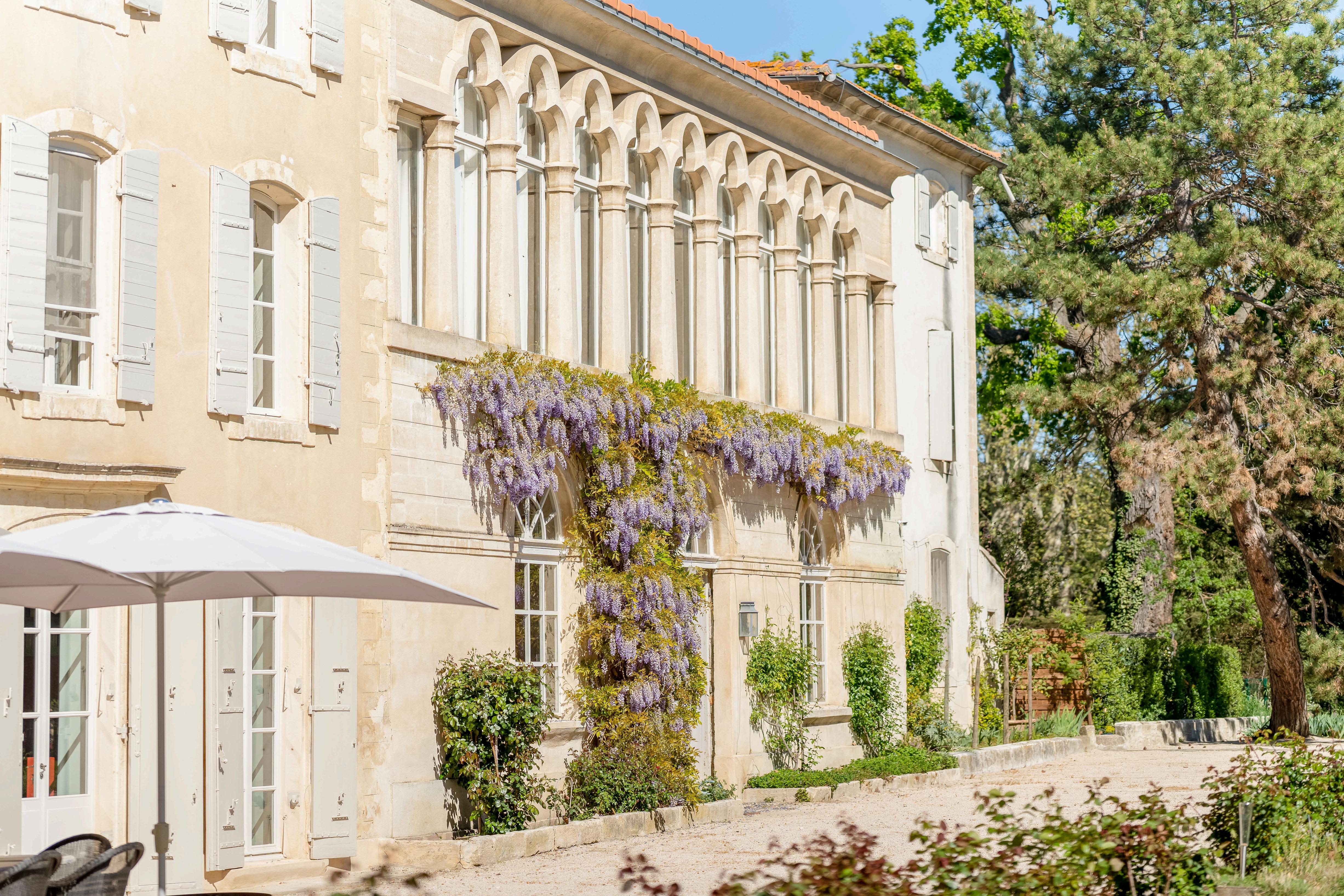 L'Orangerie relie le château principal au Mas et est ornée de magnifiques glycines. Idéale pour les célébrations plus intimes.