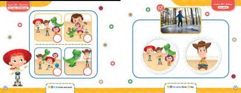 Both the Student’s Book and Workbook help develop fine motor skills, as well as hand-eye coordination, by providing activities which focus on matching, tracing, coloring, drawing, manipulating stickers, and craft projects.