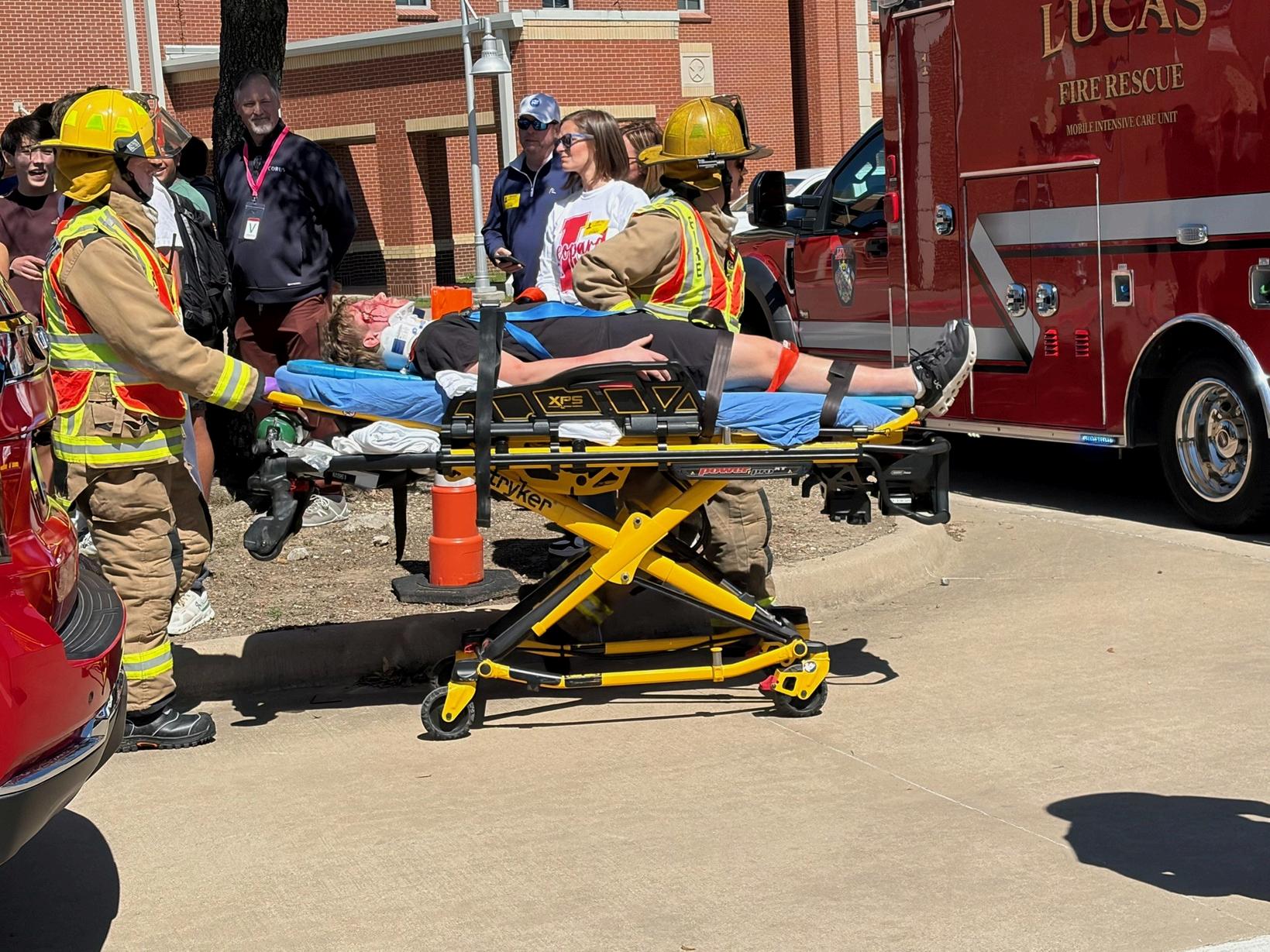 Aspartoftheprogram,studentswitnessedastagedaccidentscenariointhewest parking lot of Lovejoy High School. Emergency responders, including police, firefighters, ambulances, and a medical flight crew, participated in the reenactment to provide a powerful and realistic learning experience. While the scene was designed to appear authentic, the event was entirely staged and no studentswereeverindanger.