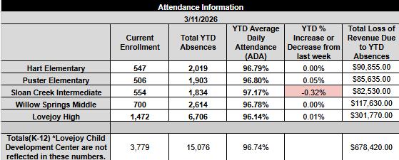 Strong school attendance is correlated with higher academic performance. Additionally,averageDailyAttendance(ADA)isametricthattheStateofTexas usestodeterminefundingforpublicschools.Eachweek,thisattendancedata willbeupdatedsoourcommunityisawareofourmostrecentADA.