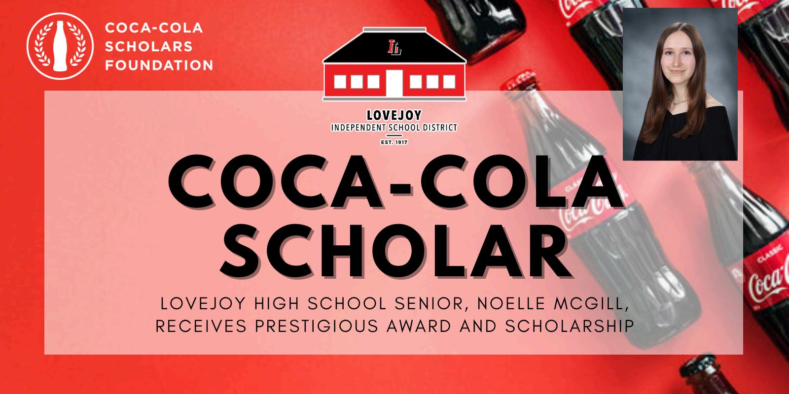 Noelle McGill, Lovejoy High School Senior, has been named a 2026Coca-Cola Scholar and will receive a $20,000 college scholarship. This extremely prestigious and competitiveawardisbestoweduponlessthan1/7thof1%ofapplicants.McGillisone of 150 selected from 107,000+ applicants from across the country to receive this scholarshipbasedonheracademicexcellence,leadership,andservicedemonstratedin schoolandcommunityactivitiesaspartofa3-stageselectionprocess.