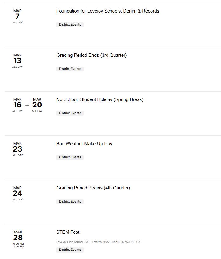Please note: the information featured in the "Community News" section is submitted by local community members. Lovejoy ISD is not affiliated with the organizationsanddoesnotclaimtoendorsethem.
