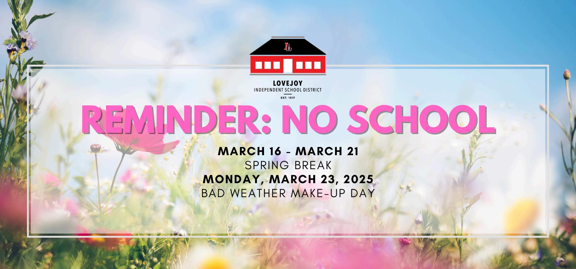NextweekisSpringBreak!Ihopeeachofyouenjoysomewell-deservedrest,fun,and specialtimewithfamilyandfriends,fillingtheweekwithlove,laughter,andjoy.