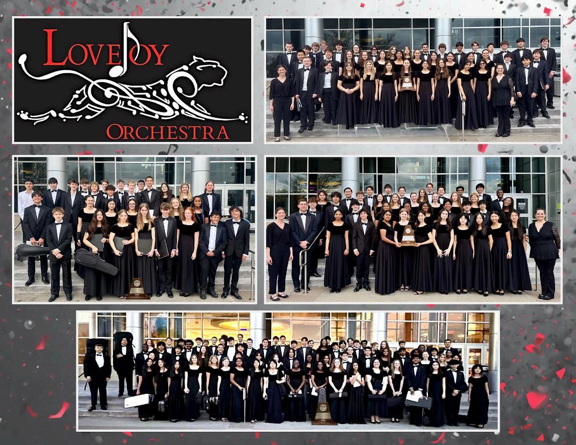 On March 5, the Lovejoy High School orchestra program celebrated an incredibleachievementattheUILConcertandSightReadingEvaluation,with allfourensemblesearningSweepstakesratings, thehighesthonorawardedat UIL. Congratulations to the Concert Orchestra, Philharmonic Orchestra, Chamber Orchestra, and the Lovejoy Symphony Orchestra (a collaboration between members of the Chamber Orchestra and the LHS Band) for this outstandingaccomplishment.