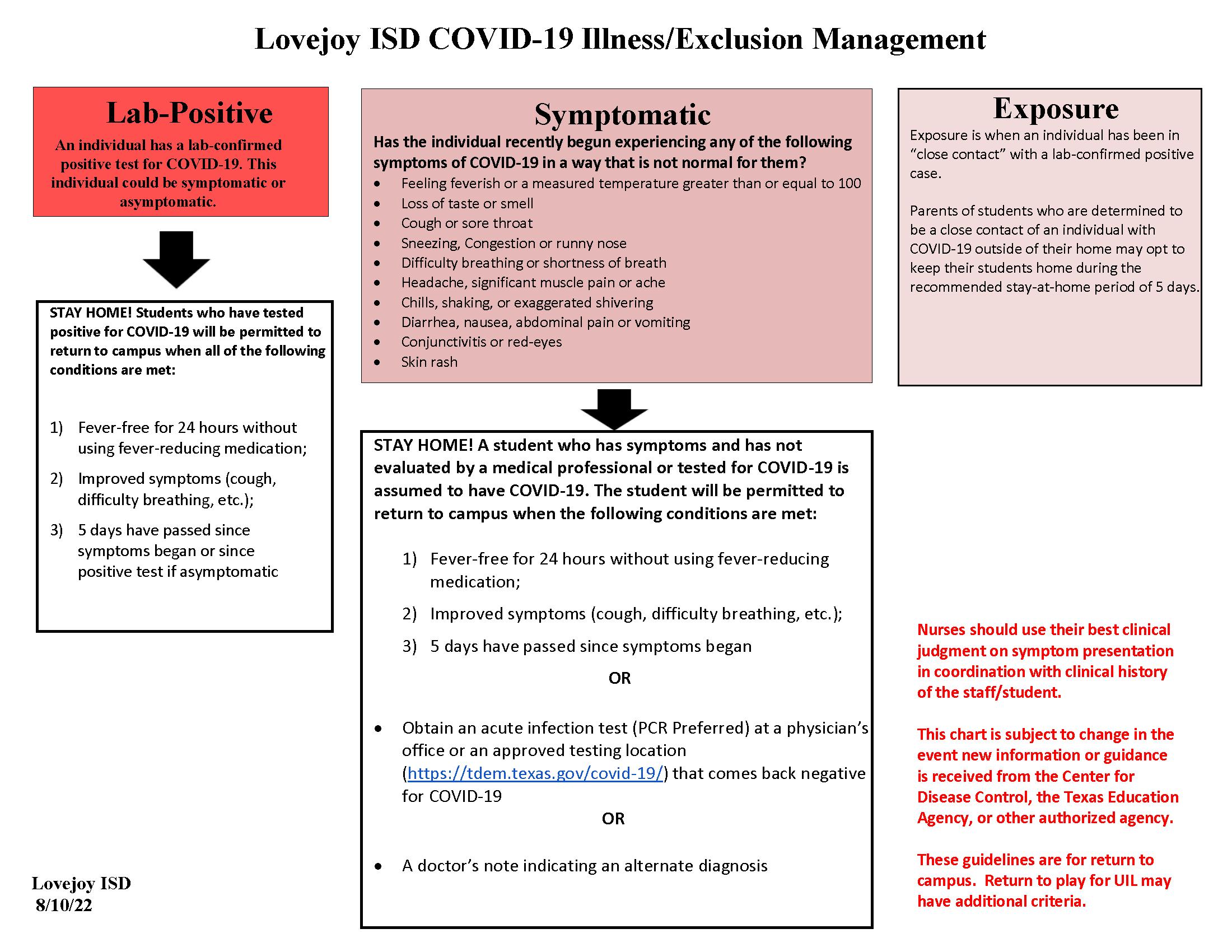 Lovejoy recently received guidance from the Texas Department of State Health Services regarding Covid 19 and schools.