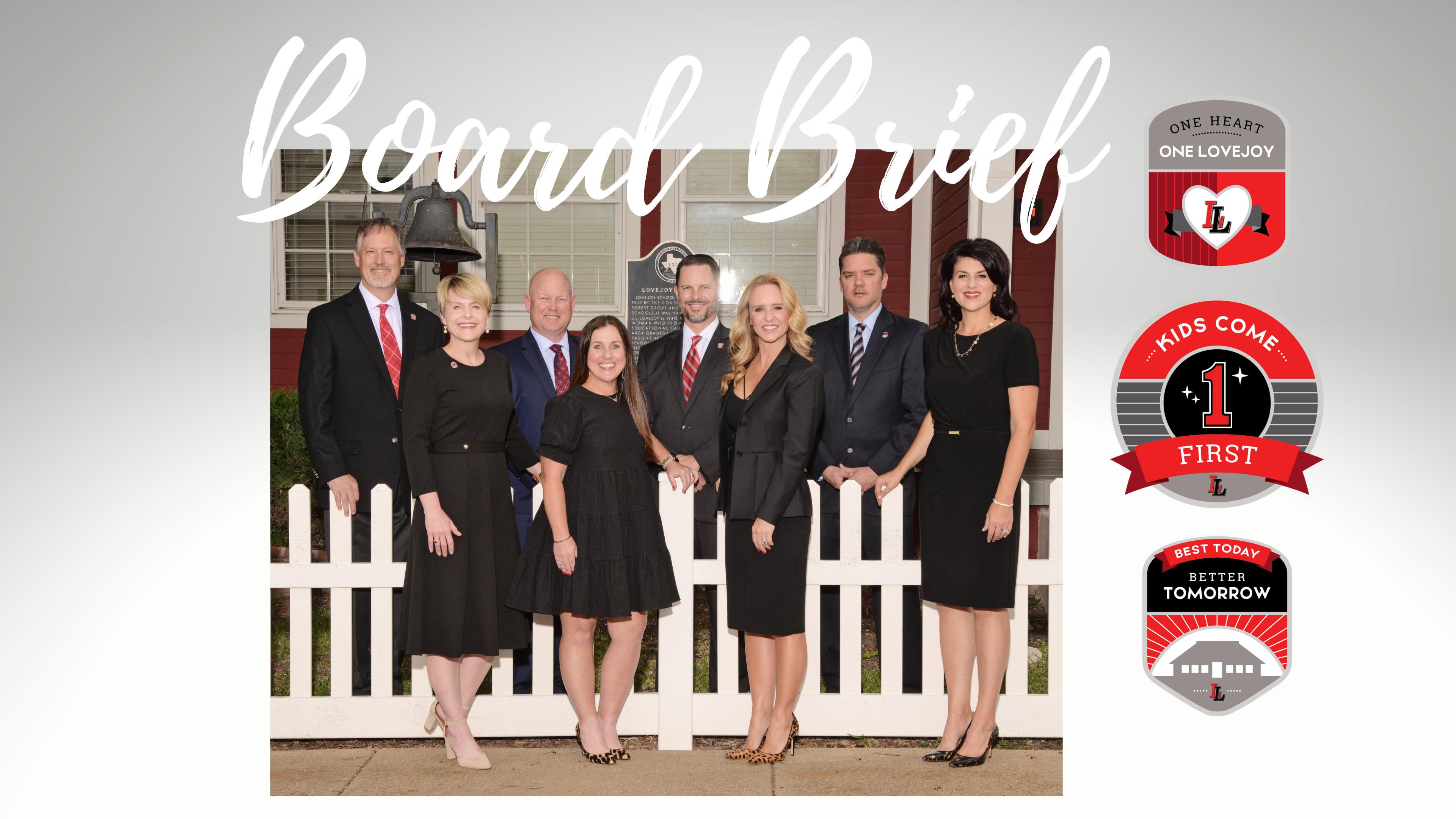 The Board Workshop began with new employee introductions. Each new employee received a Lovejoy ISD pen to symbolize the writing of their next professional chapter and a caramel apple to symbolize the significant role of teachers and educators in our community.