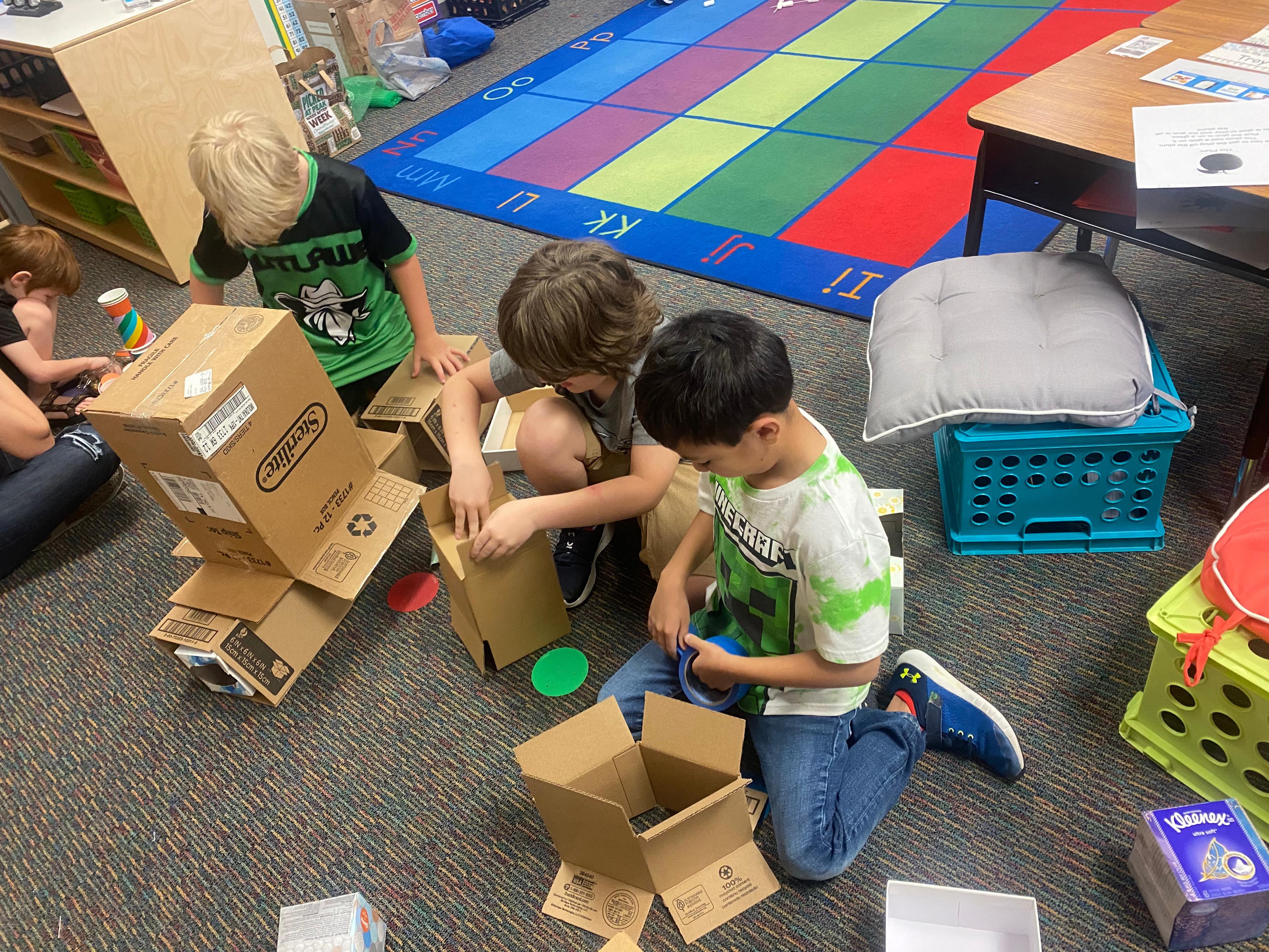 1st Grade students have been participating in STEM challenges for the past two weeks during Science. Some of their challenges included building a bridge to hold the 3 Billy Goats Gruff, constructing a ladder that would reach the top of Rapunzel's tower, and making a basket to hold apples for Little Red Riding Hood's grandma. Students also listened to the book Iggy Peck, Architect by Andrea Beaty. After noticing the character using everyday items to build a variety of structures, students were challenged to do the same. Students used cups, popsicle sticks, and even boxes to build a structure. Lots of fun and learning were happening during science.
