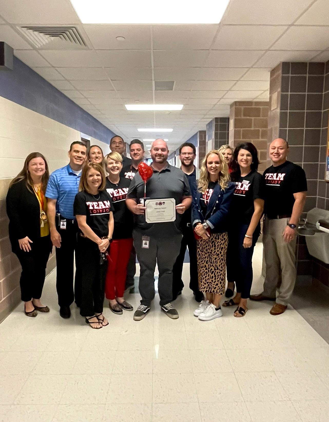 Our Superintendent, Board of Trustees, Cabinet Members, Principals, Counselors, and Sponsor were honored to present this month’s Heart of a Teacher Staff awards on Thursday. This monthly award celebrates one teacher from each campus that has truly exemplified Lovejoy's Core Values. Their contributions to student success both in and out of the classroom are what make Lovejoy a uniquely special place to live and learn!