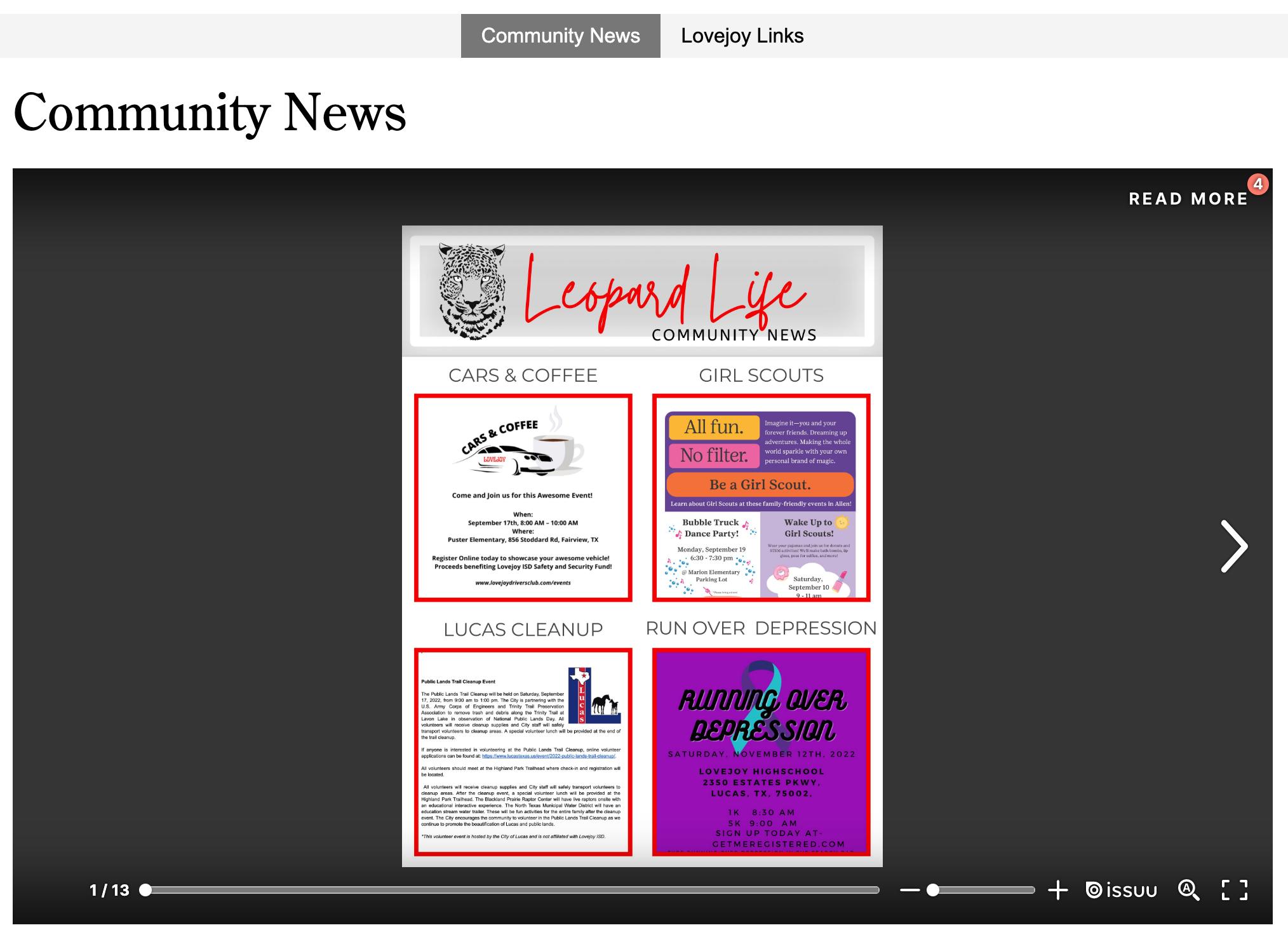 The Lovejoy ISD Community News website is intended to facilitate connections and raise awareness of local events, activities, fundraisers and organizations that might interest Lovejoy families. The information featured on the Community News website is submitted by community members. Lovejoy ISD is not affiliated with the organizations and does not claim to endorse them. Check out the new Community News format!