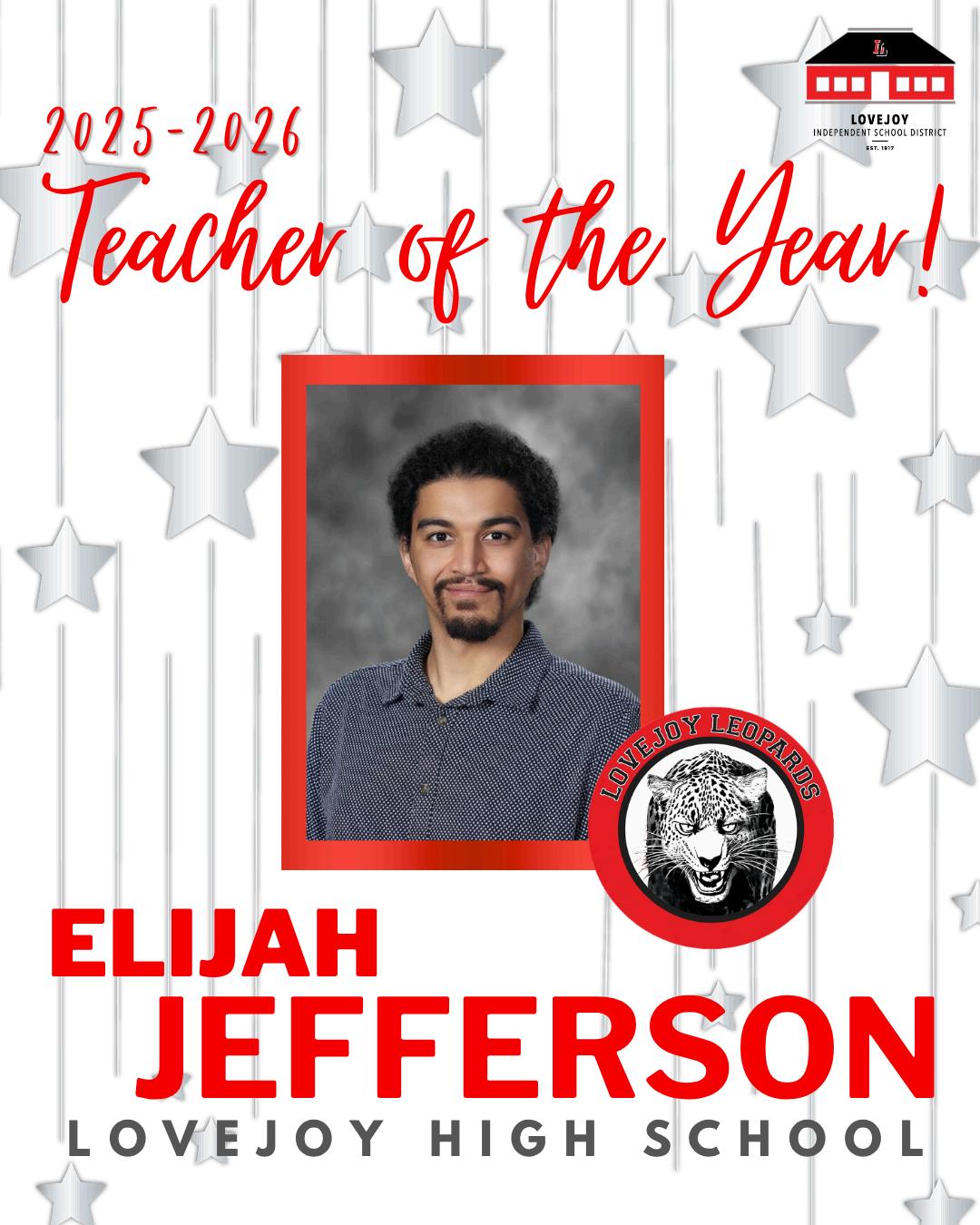 LovejoyISDisproudtoannouncethe2025-2026CampusTeachersoftheYear: Melany Porter (LCDC), Bree Berry-Dozier (HES), Shannon Price (PES), David Burger(SCIS),JennyPerez(WSMS),andElijahJefferson(LHS).