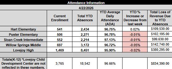 Strong school attendance is correlated with higher academic performance. Additionally,averageDailyAttendance(ADA)isametricthattheStateofTexas usestodeterminefundingforpublicschools.Eachweek,thisattendancedata willbeupdatedsoourcommunityisawareofourmostrecentADA.