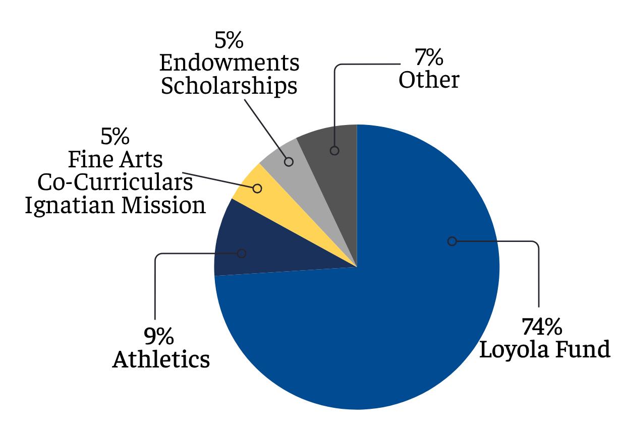 Your charitable support fuels every part of the Loyola experience, from financial aid and faculty development to faith formation, academics, and athletics. Your gift directly impacts every student, every day, and for this we are truly grateful.
