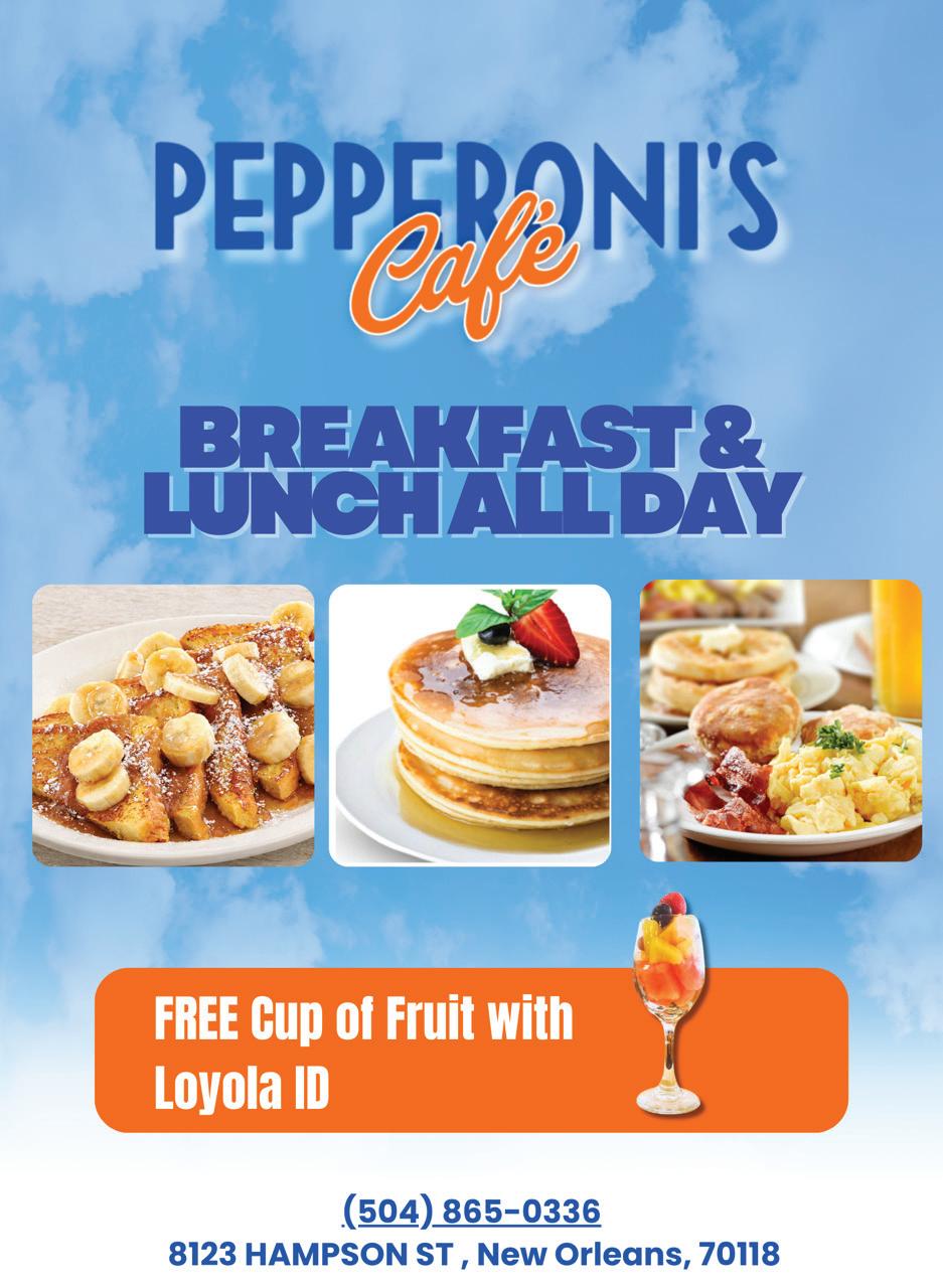 And that experience is built on places like Frostop, but also like everyday spaces students come to love without even realizing it. Broadway, Maple, Feret are not just streets. ey are part of the rhythm of student life. e walks to Mint, Dat Dog or Shugs between classes, a late night food run, or just a place to build memories. Years from now when we look back on our time at Loyola, there are the places that will de ne our experiences just as much as any classroom.