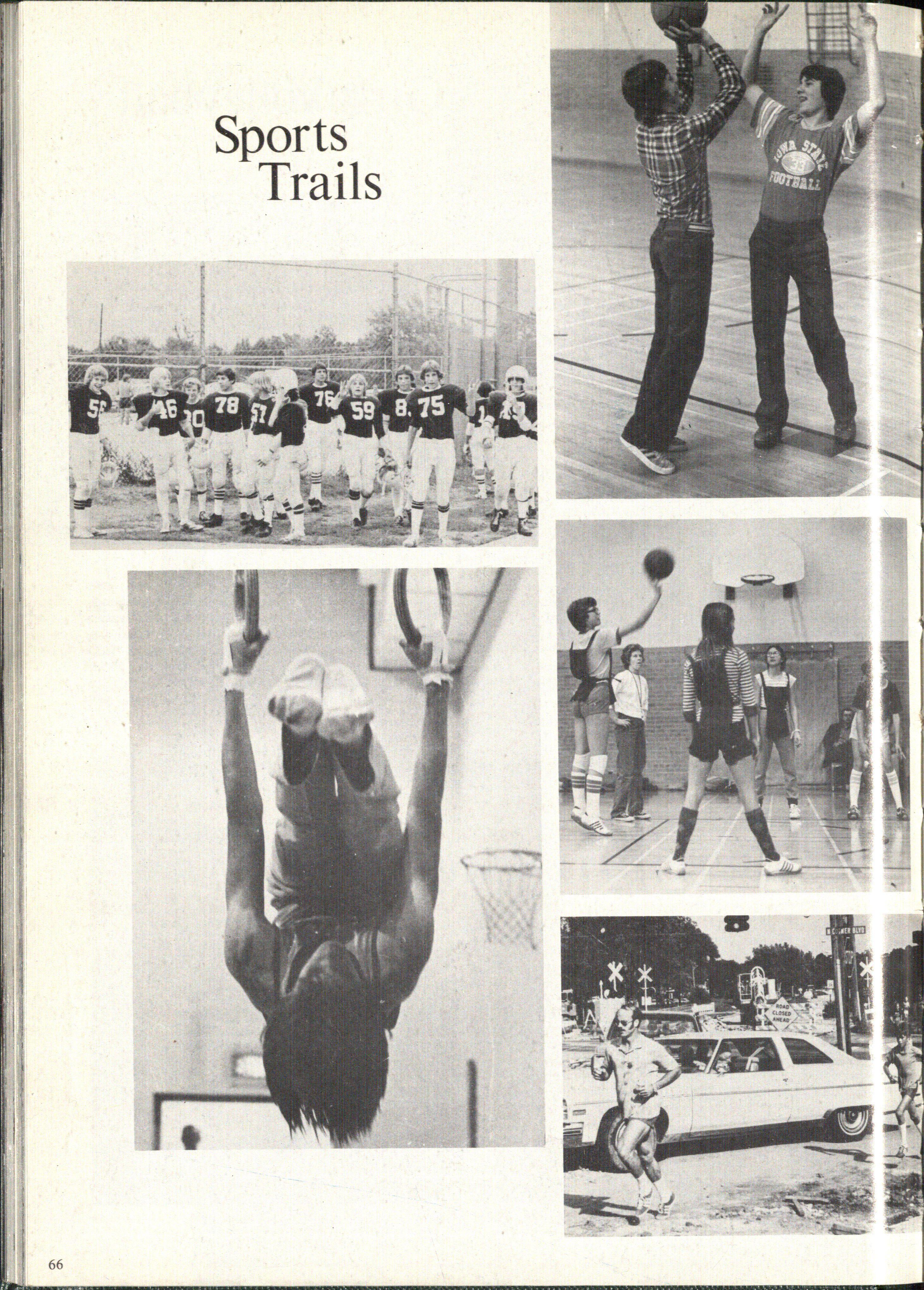 Kromberg, Randy Hansen. Second Row: Keith McMurtry, Mike Hansen, Mark Rose. Third Row: Greg Anderson, Dan Kirk, Stan Nelson, Kevin Hubbell. At Right: East battles Northeast to a victory.