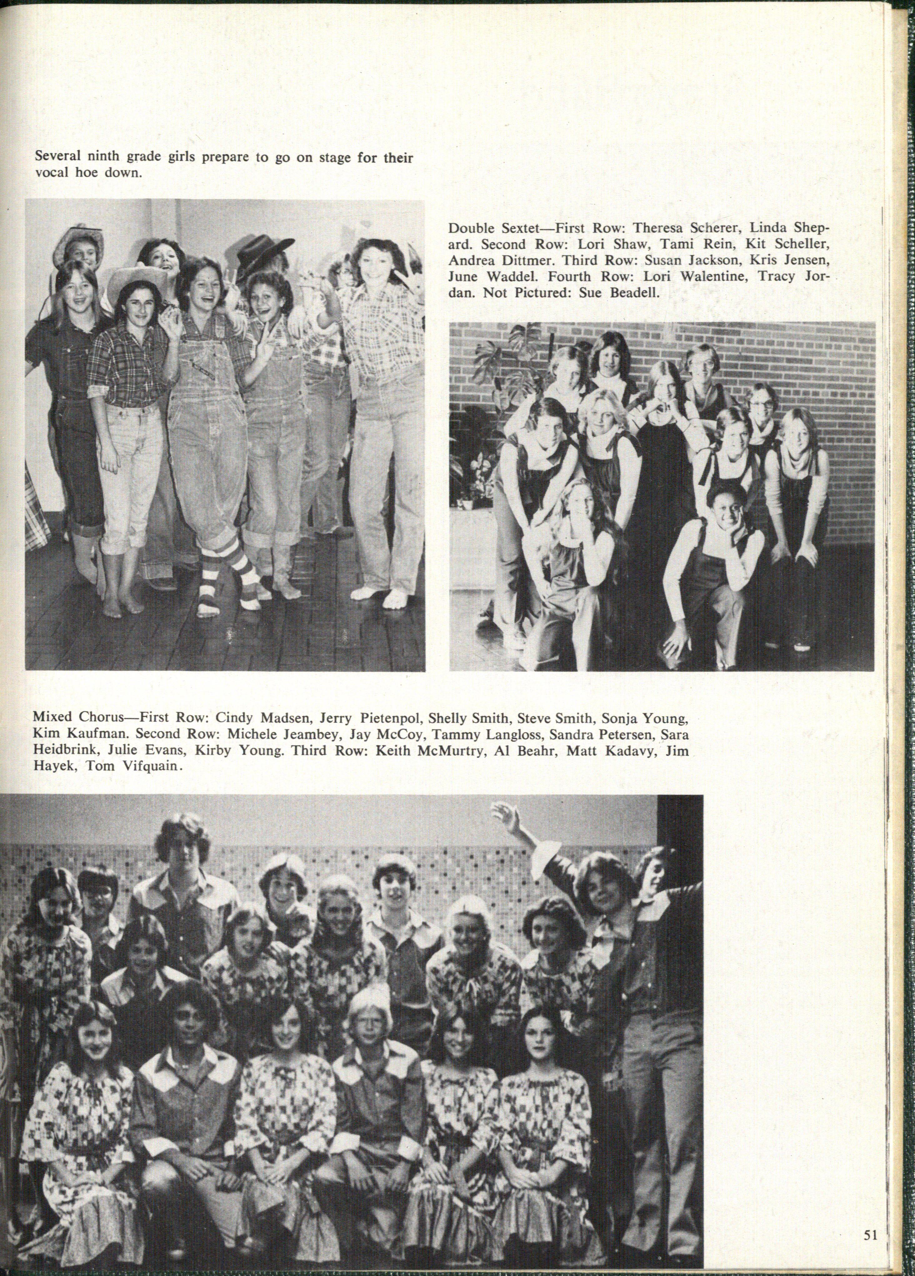 Mixed Chorus-First Row: Cindy Madsen, Jerry Pietenpol, Shelly Smith, Steve Smith, Sonja Young, Kim Kaufman. Second Row: Michele Jeambey, Jay McCoy, Tammy Langloss, Sandra Petersen, Sara Heidbrink, Julie Evans, Kirby Young. Third Row: Keith McMurtry, Al Beahr, Matt Kadavy, Jim Hayek, Tom Vifquain.