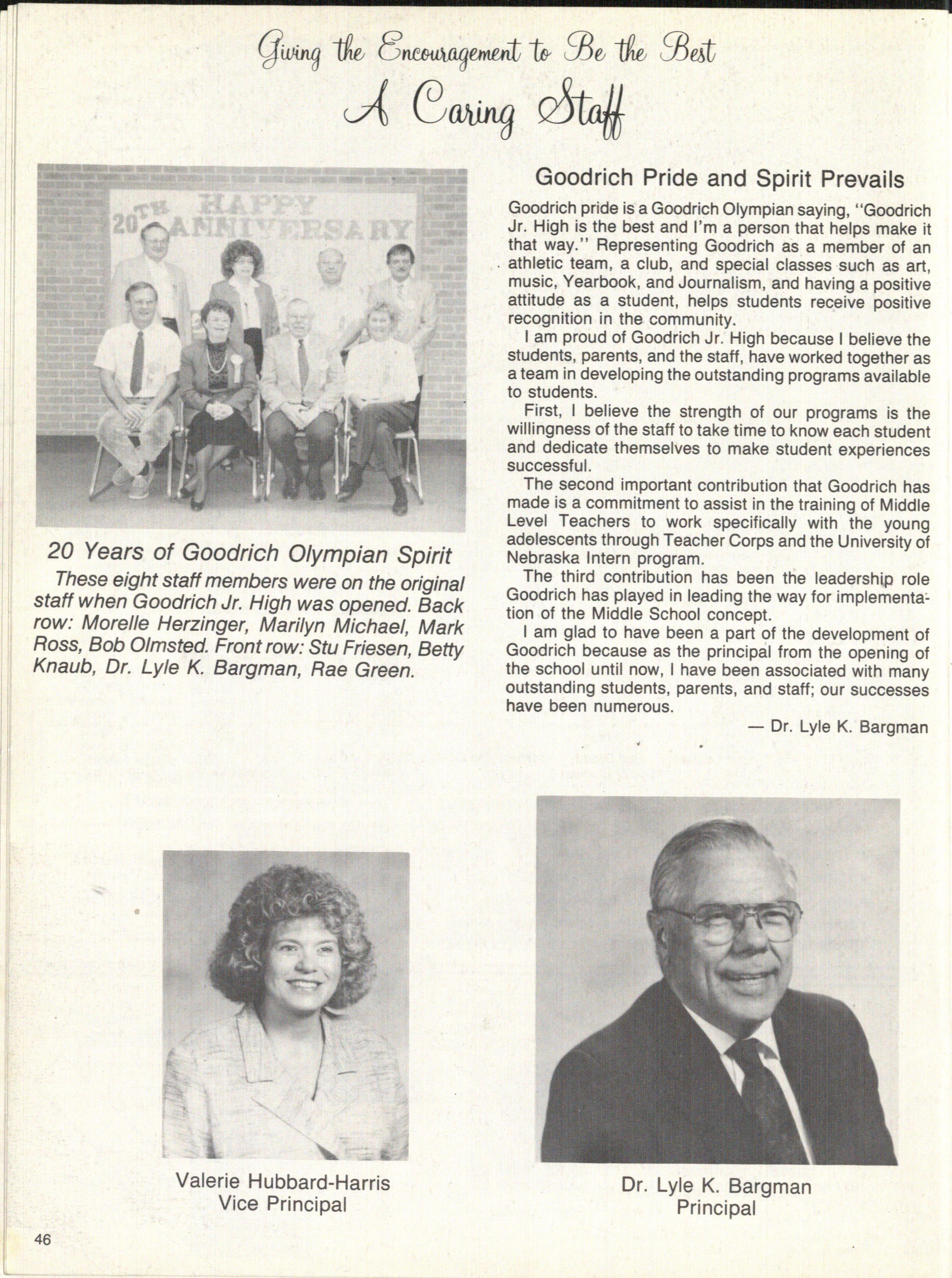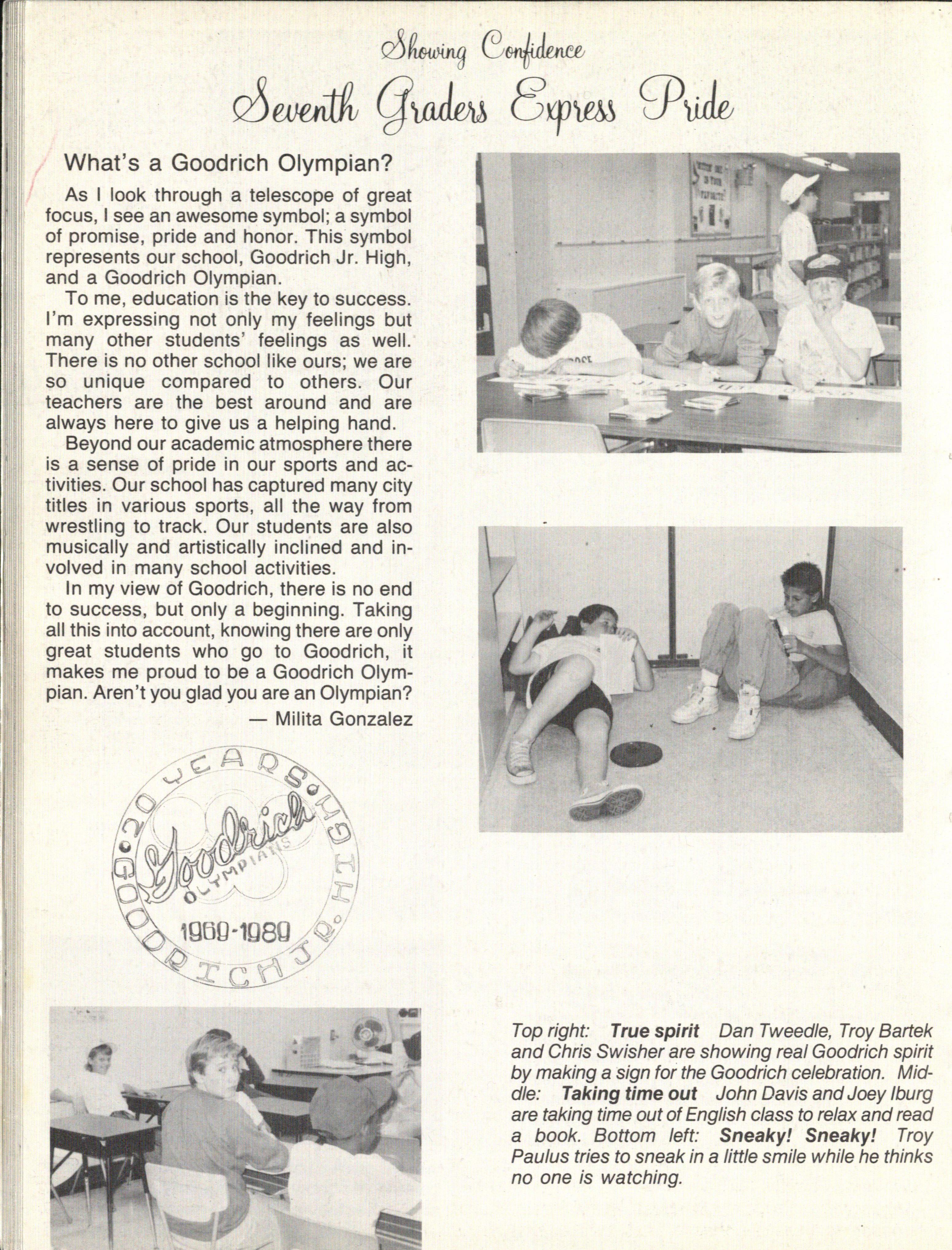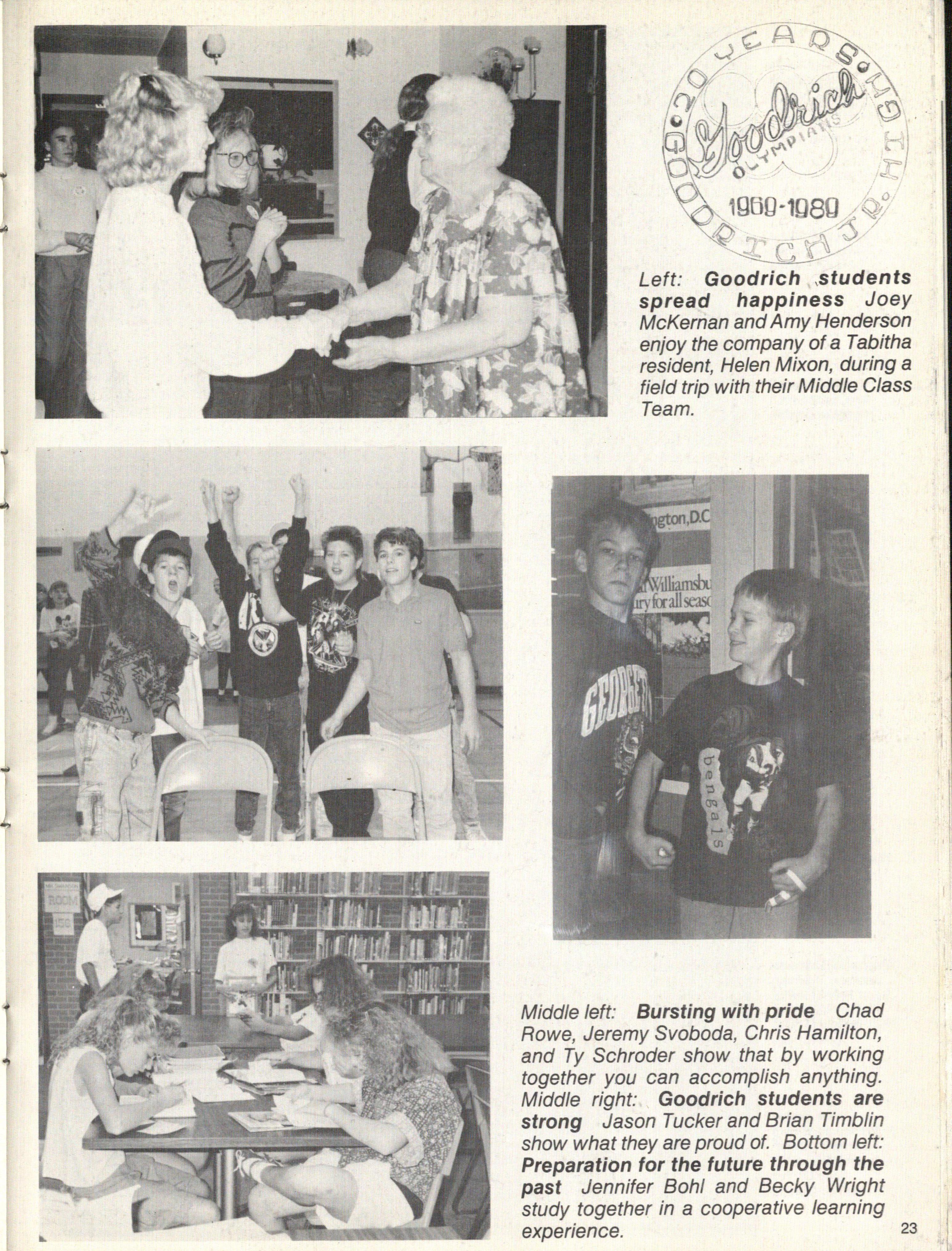 The 1989-90 yearbook , Twenty Years of Goodrich Olympian Spirit , is very special because it symbolizes 20 years of educational opportunity for young people in the Goodrich Junior High area.