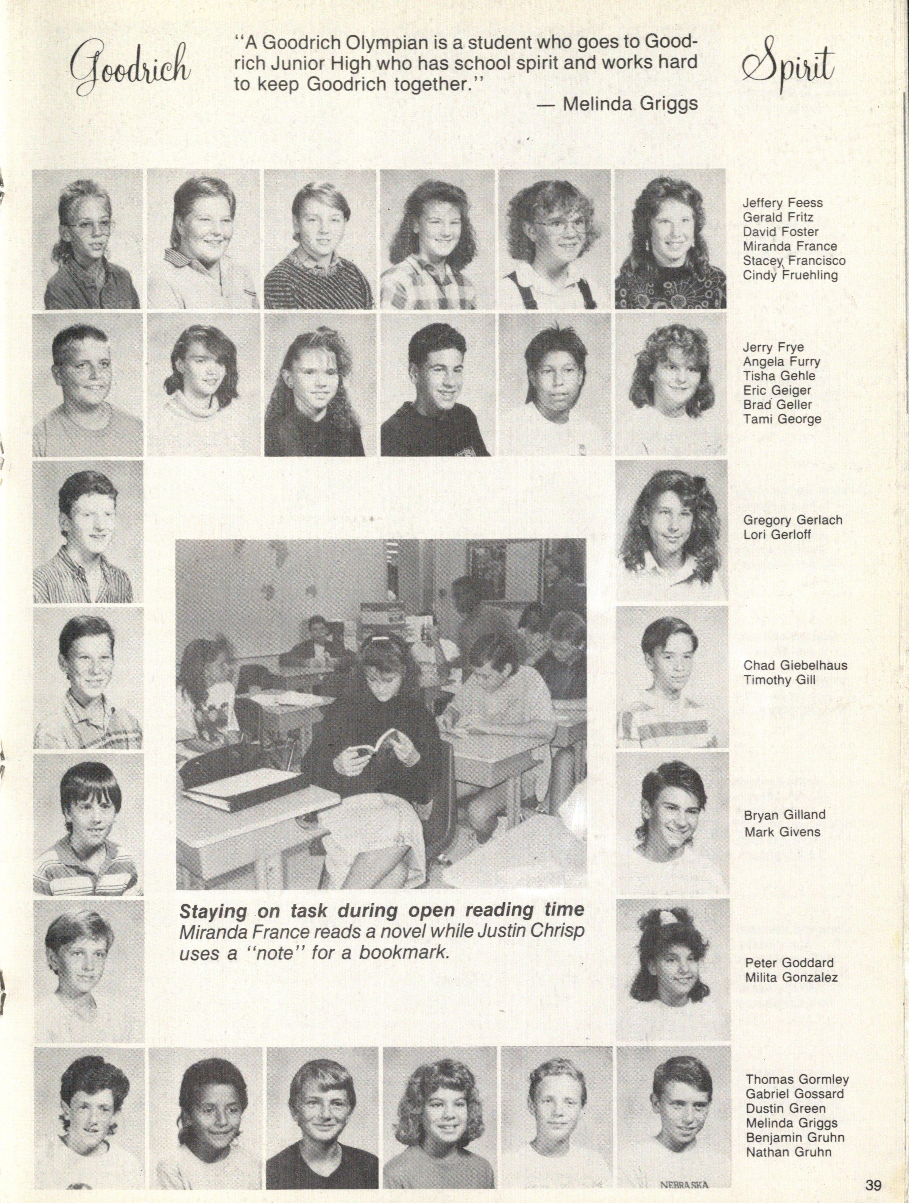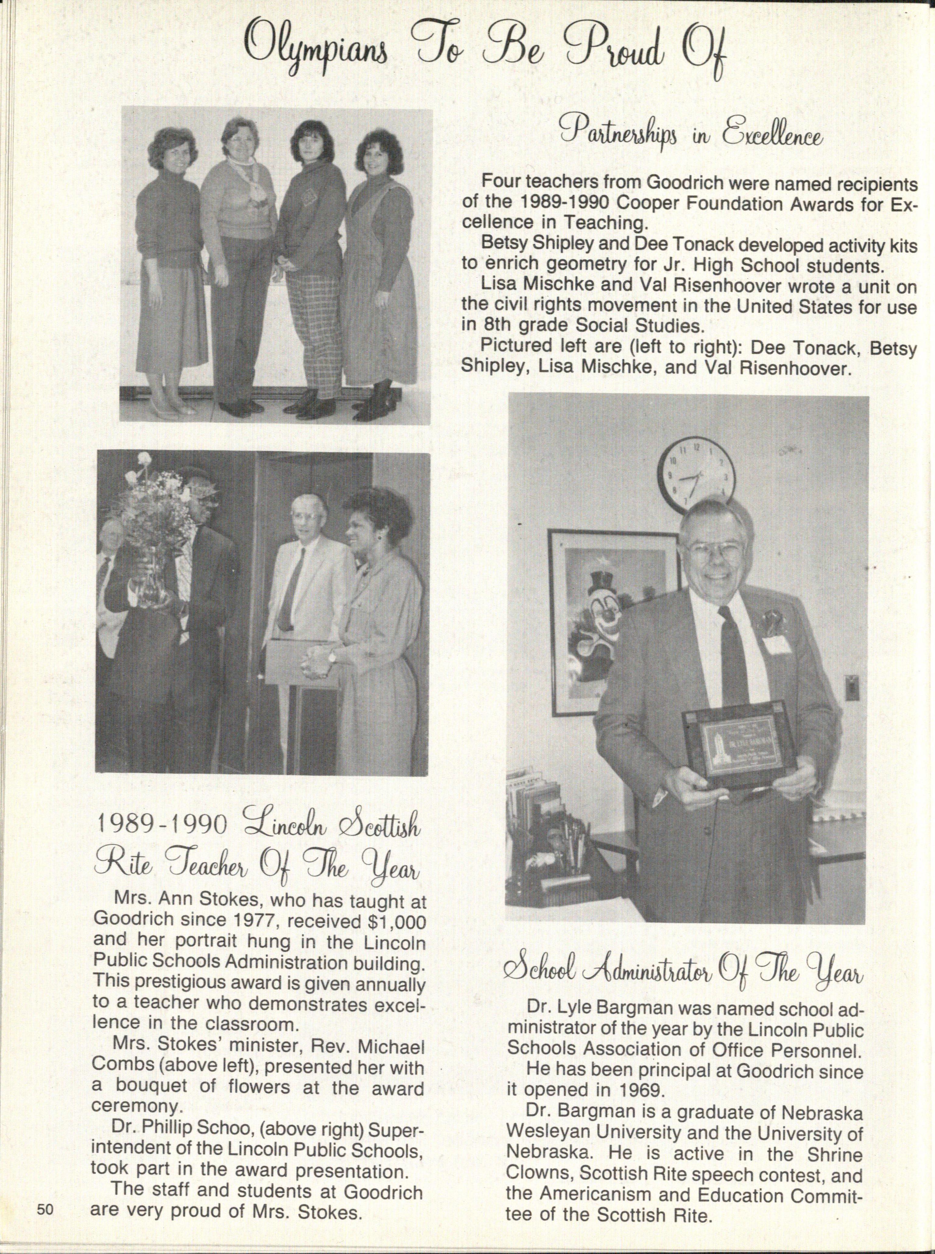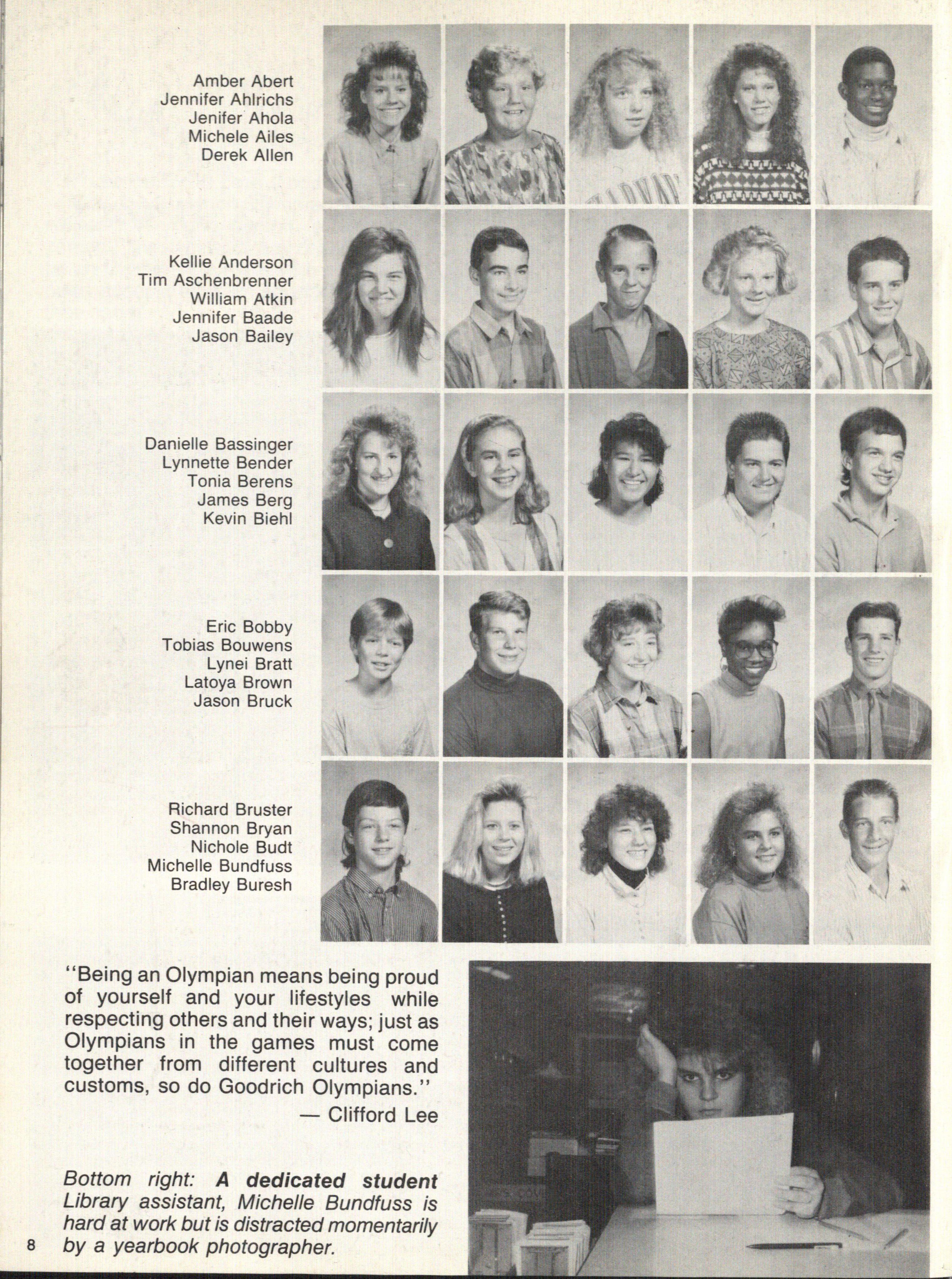 The 1989-90 yearbook , Twenty Years of Goodrich Olympian Spirit , is very special because it symbolizes 20 years of educational opportunity for young people in the Goodrich Junior High area.