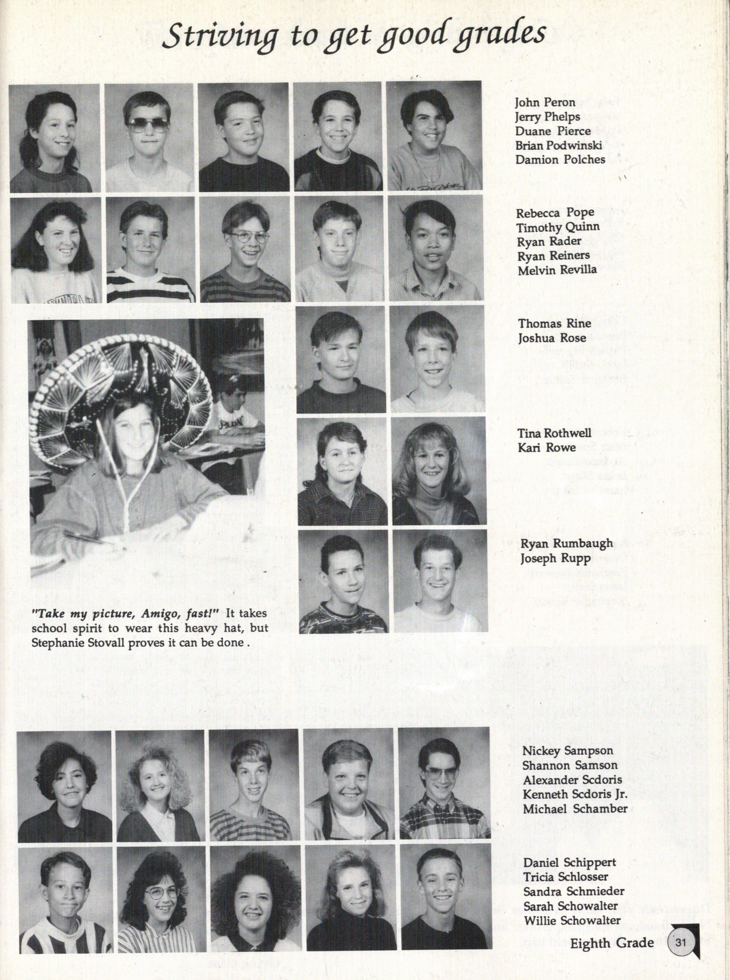 Back row: Mike Bauer, John Niederhaus, Robert Evans, Eddie Brown, Ryan Lunberry, Randy Kraatz Middle row: Mrs. Magee, Stacey Francisco, Heather Bailey, Michelle Tryon, Elizabeth Anderson, Calvin Roblyer Front row: Jimmy Schmitz, Jill Gade, Reggie Russell, Christine Damon.