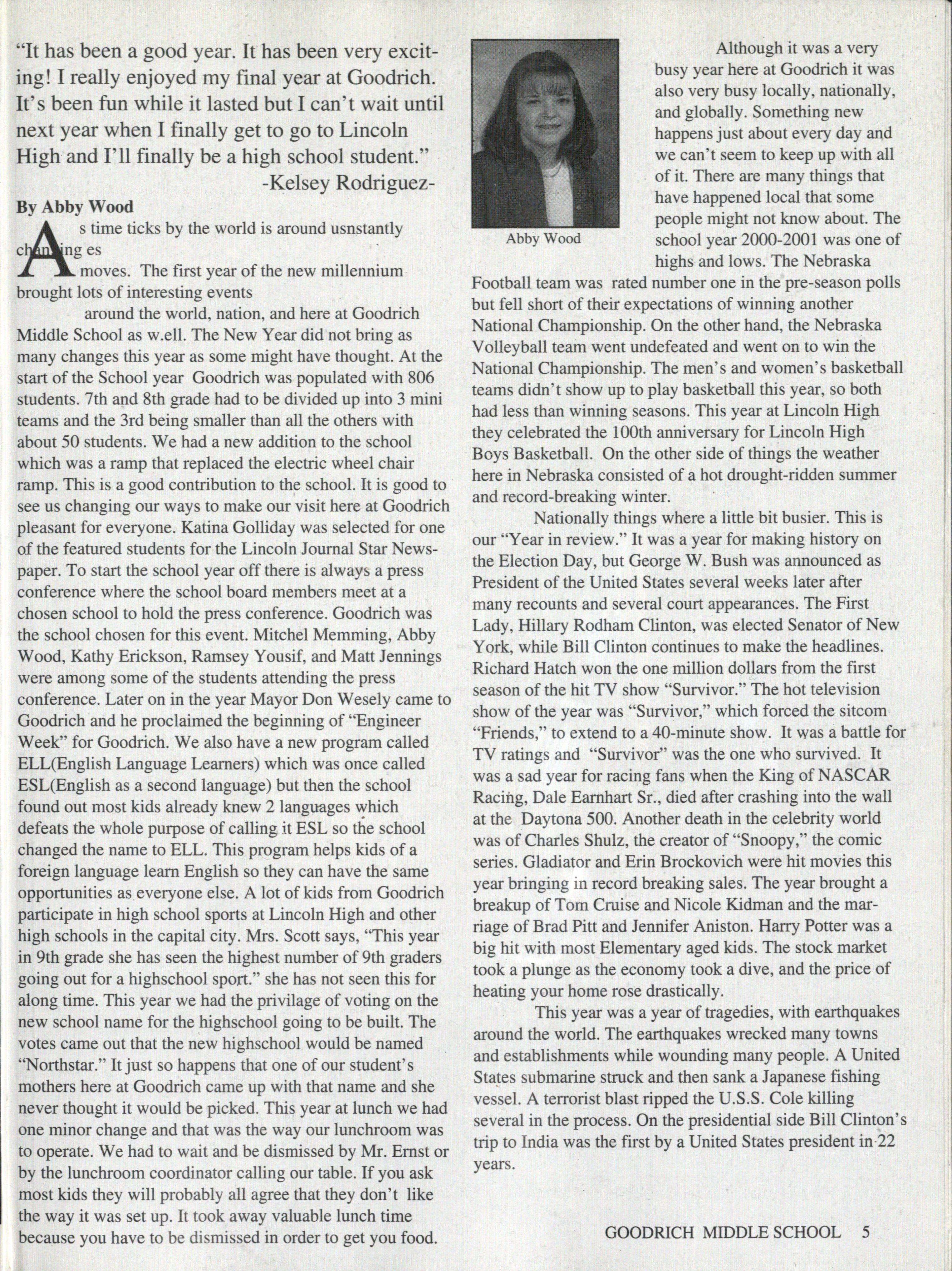 Goodrich Middle 2001 Yearbook