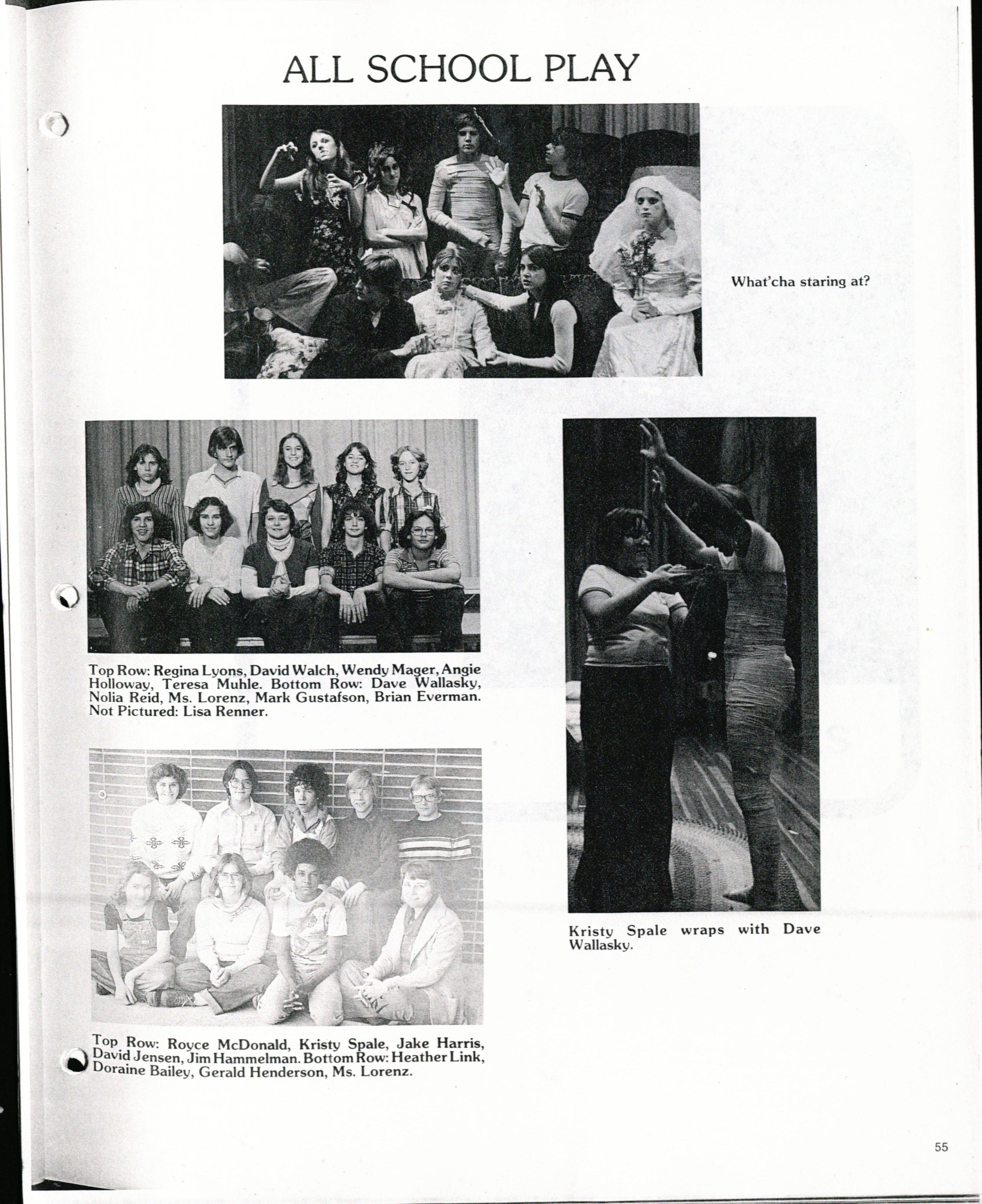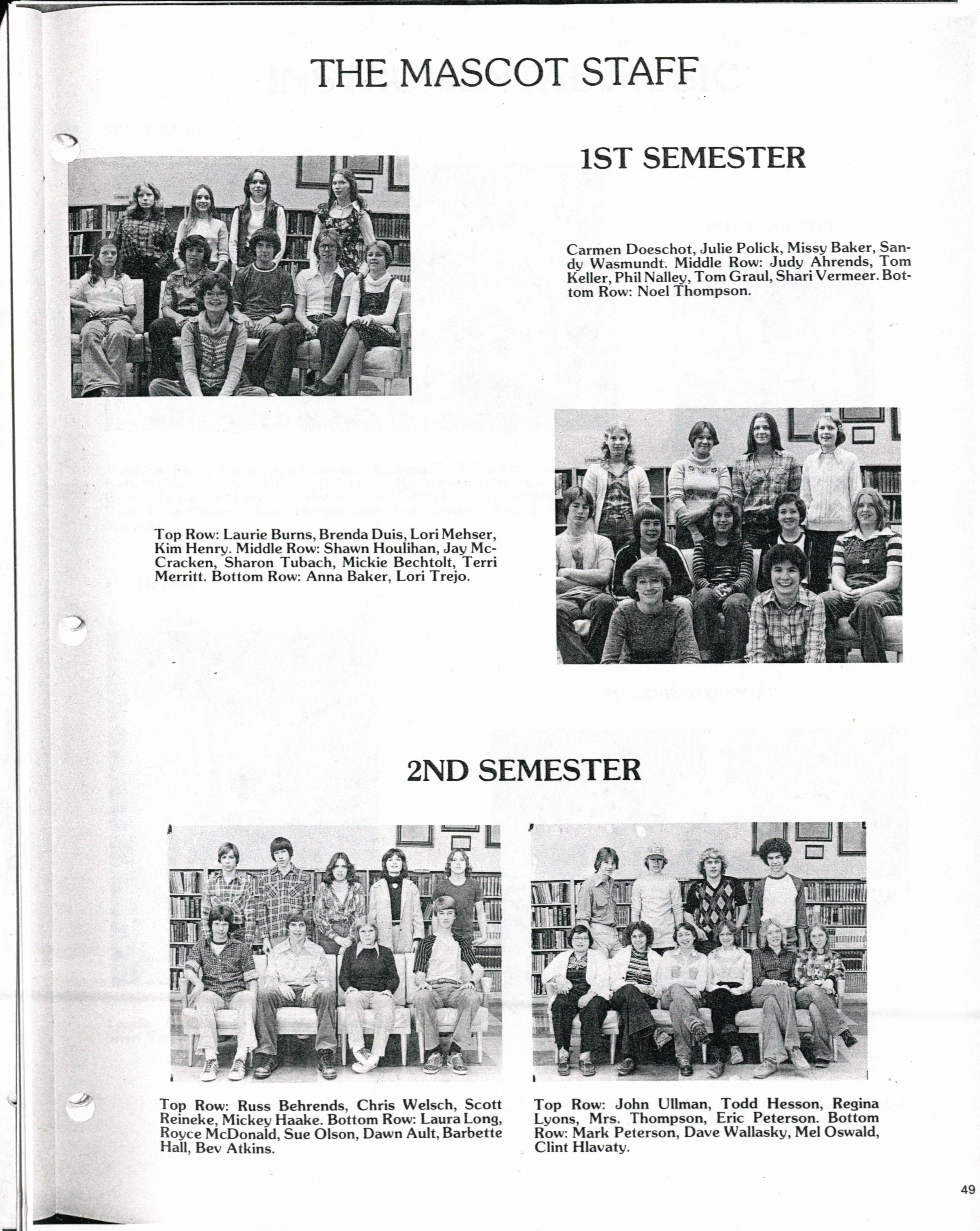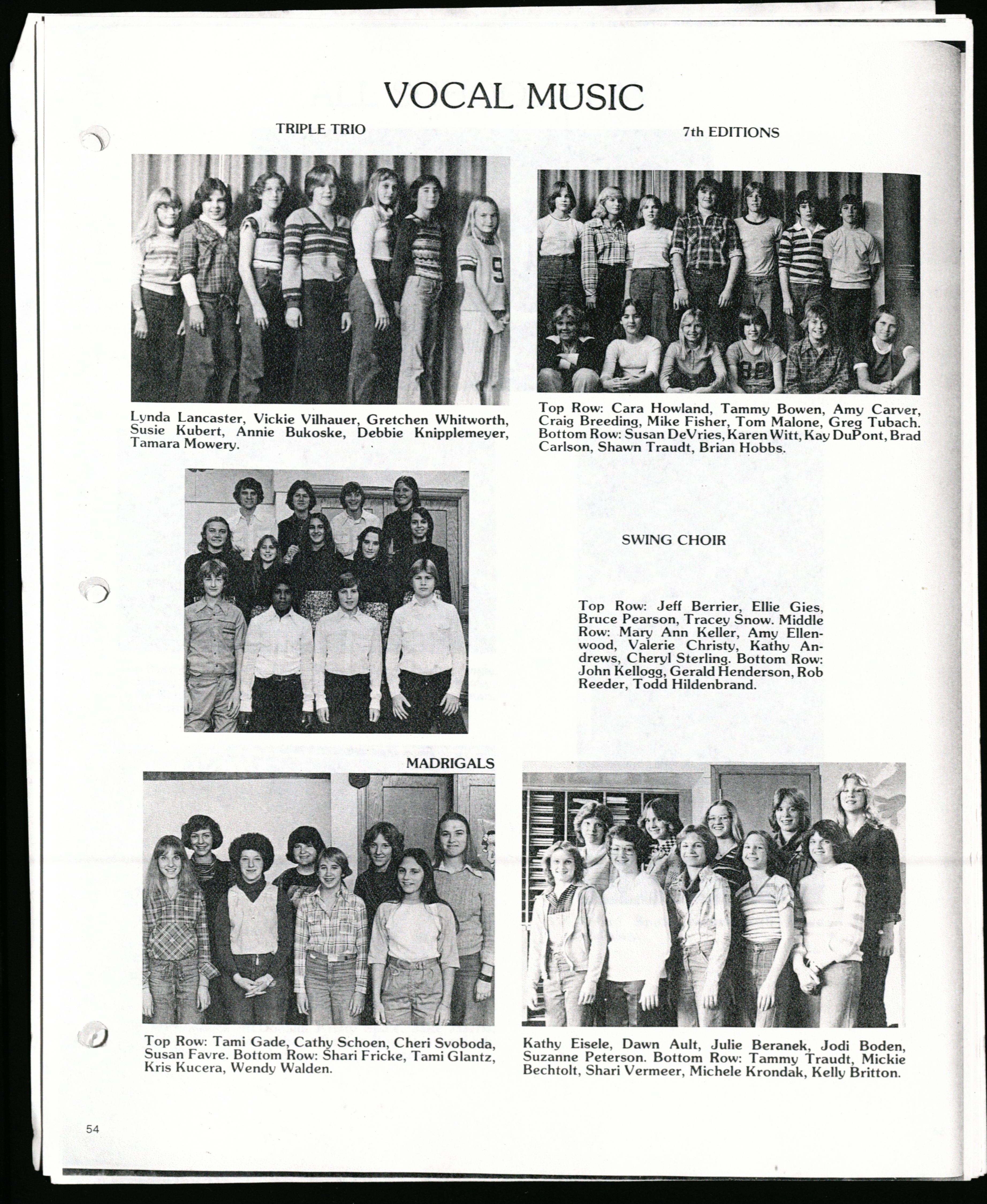 Top Row : Lisa Swansen , Bruce Pearson , Jon Stewart , Mark Holt , Bob Lyons , Lori Adams. Middle Row : Lori Miller , Curtis Bonebright , Kim Mather , Judi Henry , Jeff Hansen , Nancy Abbott. Bottom Row : Beth Baldwin , Tommy Greenfield , Vivian Phillips.