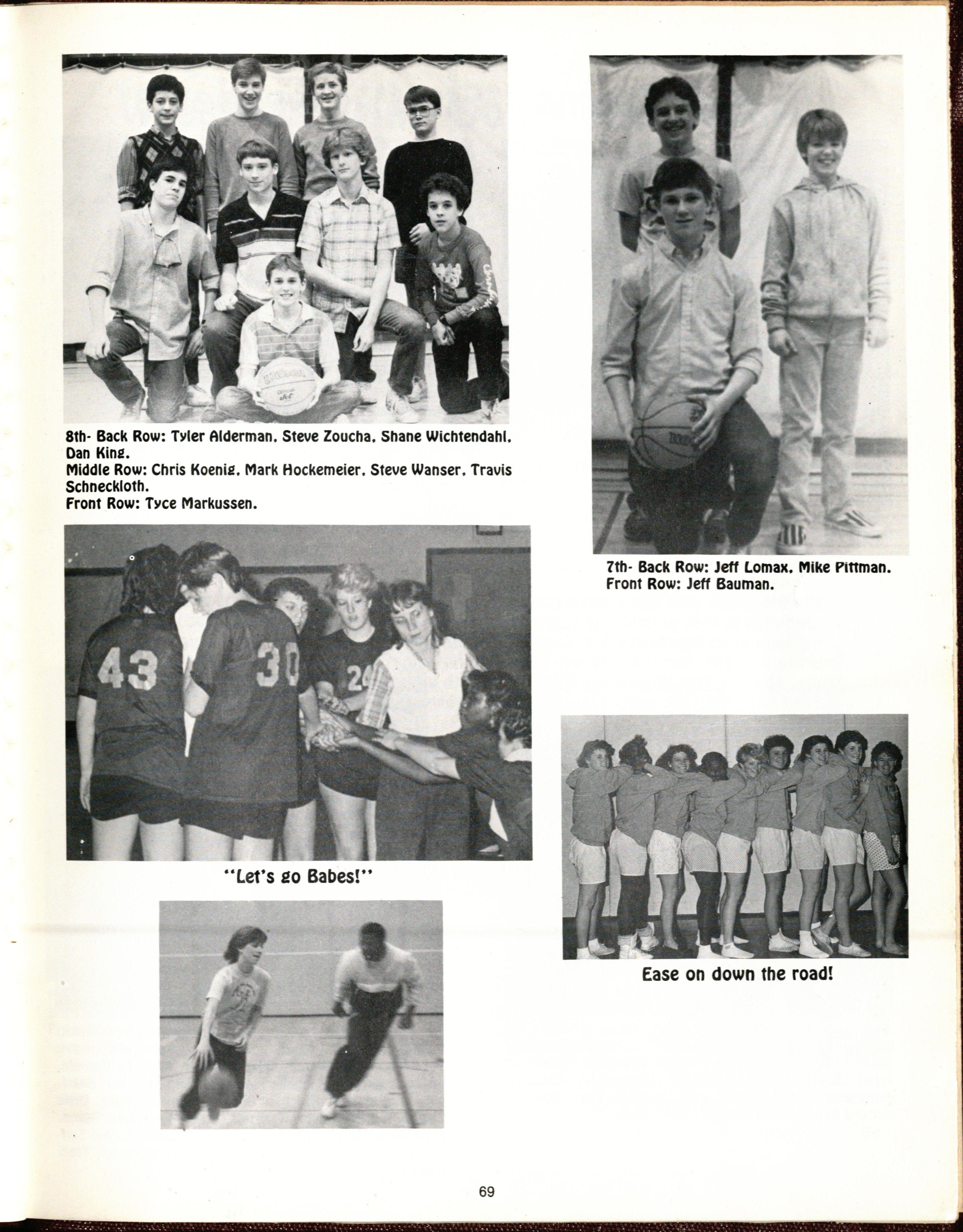 The 9th erade eirls had a defyine season. Practicine from 4:00 to 6:00 made a eenerous contribution to their outstandine accomplishments. UarsitY. coached by Becky Pasco. finished · the season at an imPressive 6-2. Losine to Pound and Mickle Put varsity throueh aeonY. but couraee broueht them back to win the followine eames. while reserves. coached by Mike White. shot for CitY ChamPions. The 7th and 8th erade eirls Practiced from 3:00-4:00 and worked on various techniques. such as: free throws. movements. and aeilitY.