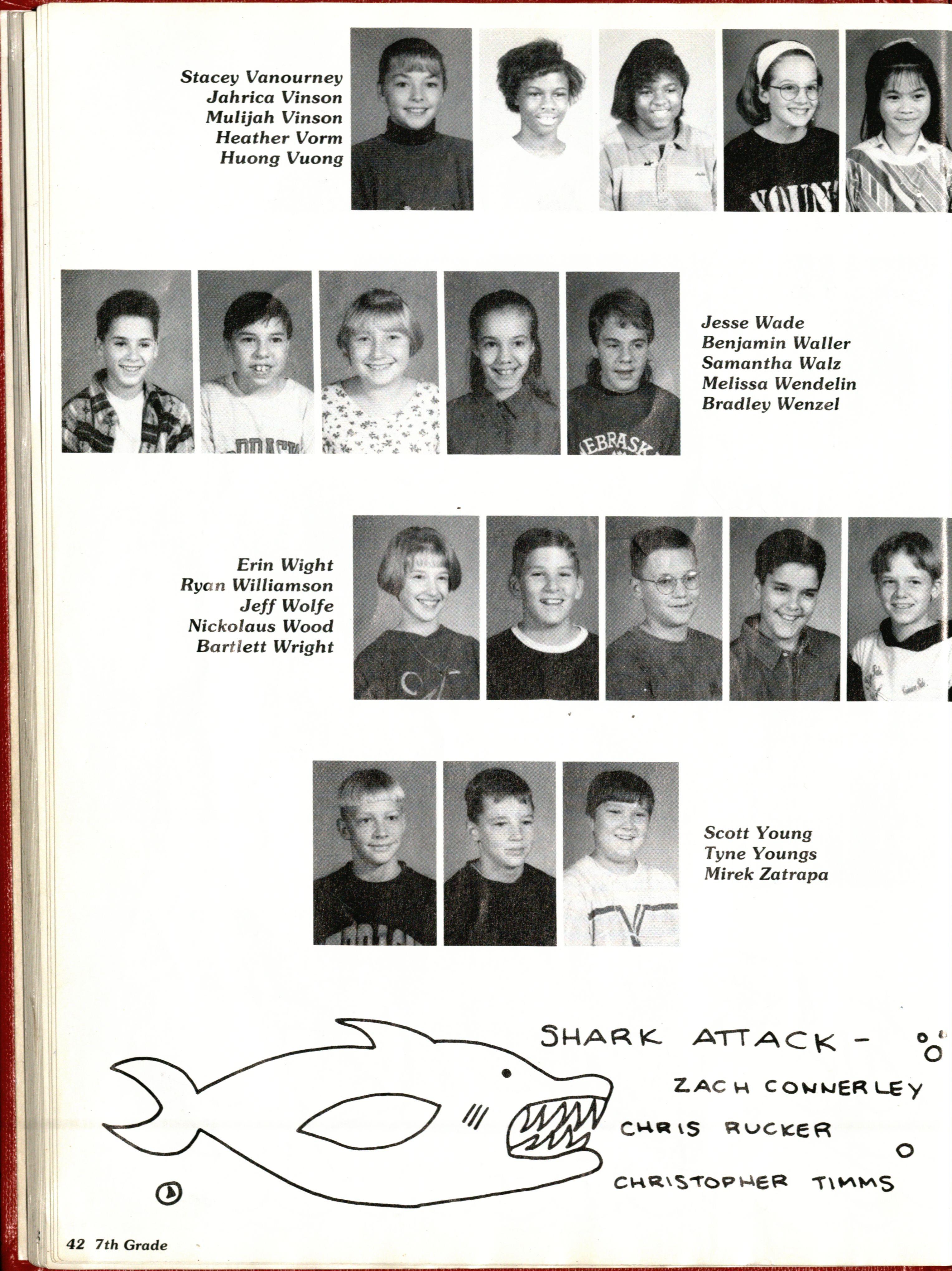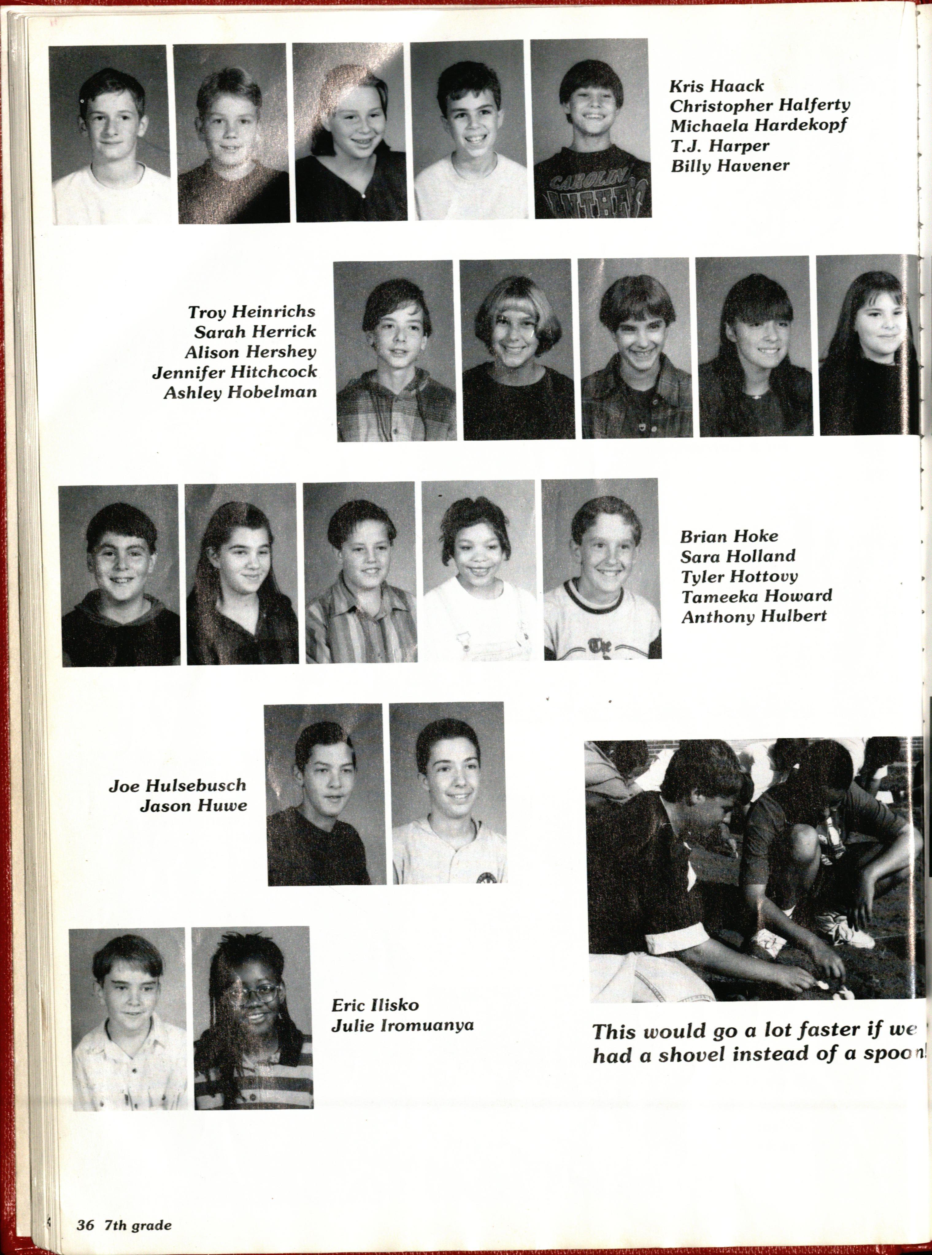 7th Grade 3rd Row: Meghan McNeal, Nikki Maltarich, Courtney Copper, Rana Jones, Kara Kurtzer, Ashley Hobelman, Erin Scott, Jennifer Ray. 2nd Row: Teysa Fuksa, Meg Busboom , Micaela Hardekopf, Frankie Lange, Jenny Jackson, Lindsey Aspergren, Nicole Franklin. 1st Row: Melissa Coleman, Maggie Boyer, Jessica Piggee, Demari Moore, Rebecca Miller.