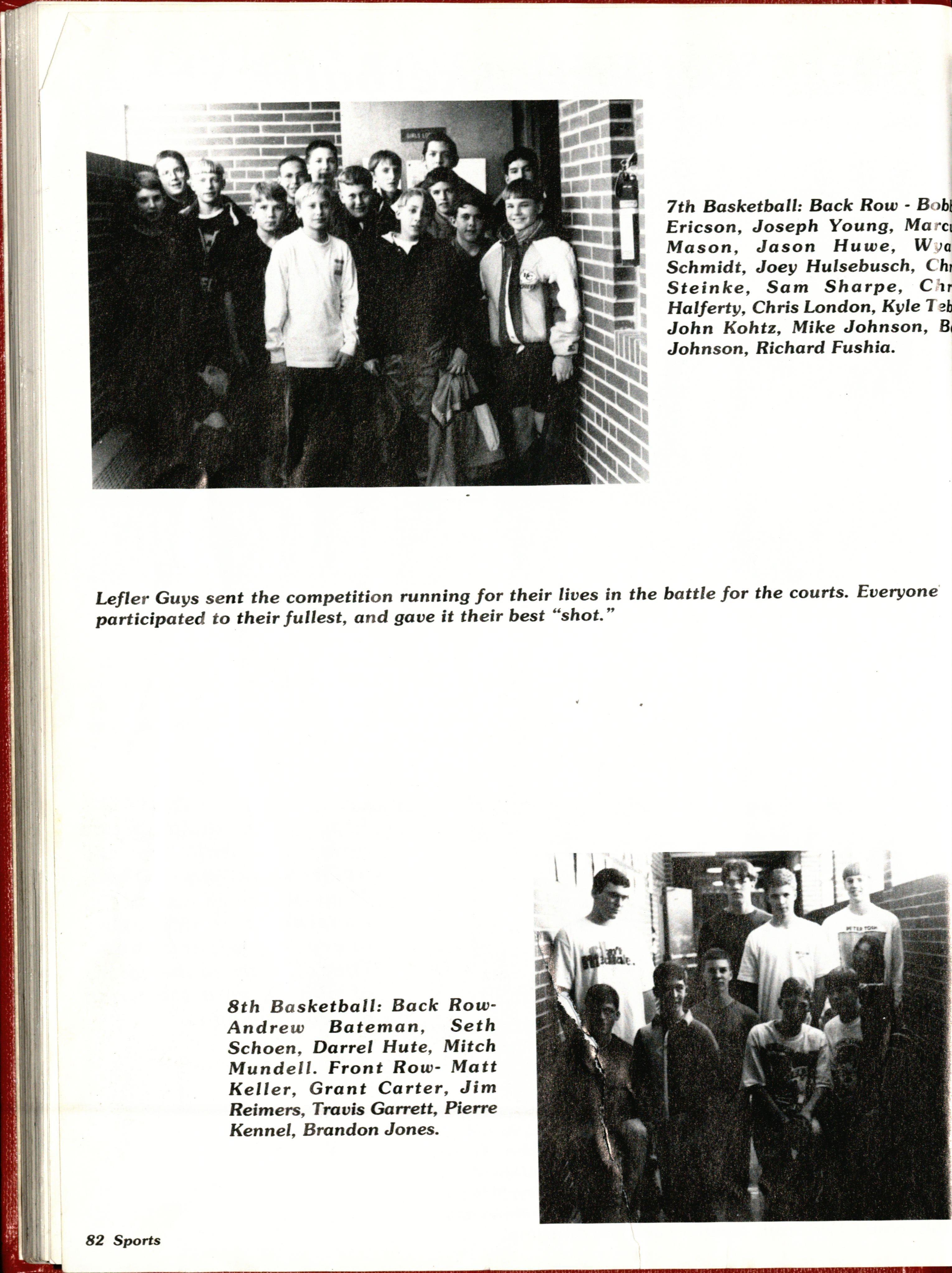 8th Basketball: Back RowAndre w Bateman, Seth Schoen , Darrel Hute , Mitch Munde ll Front Row- Matt Keller, Grant Carter , Jim Reimers , Travis Garrett, Pierre Kennel , Brandon Jones.