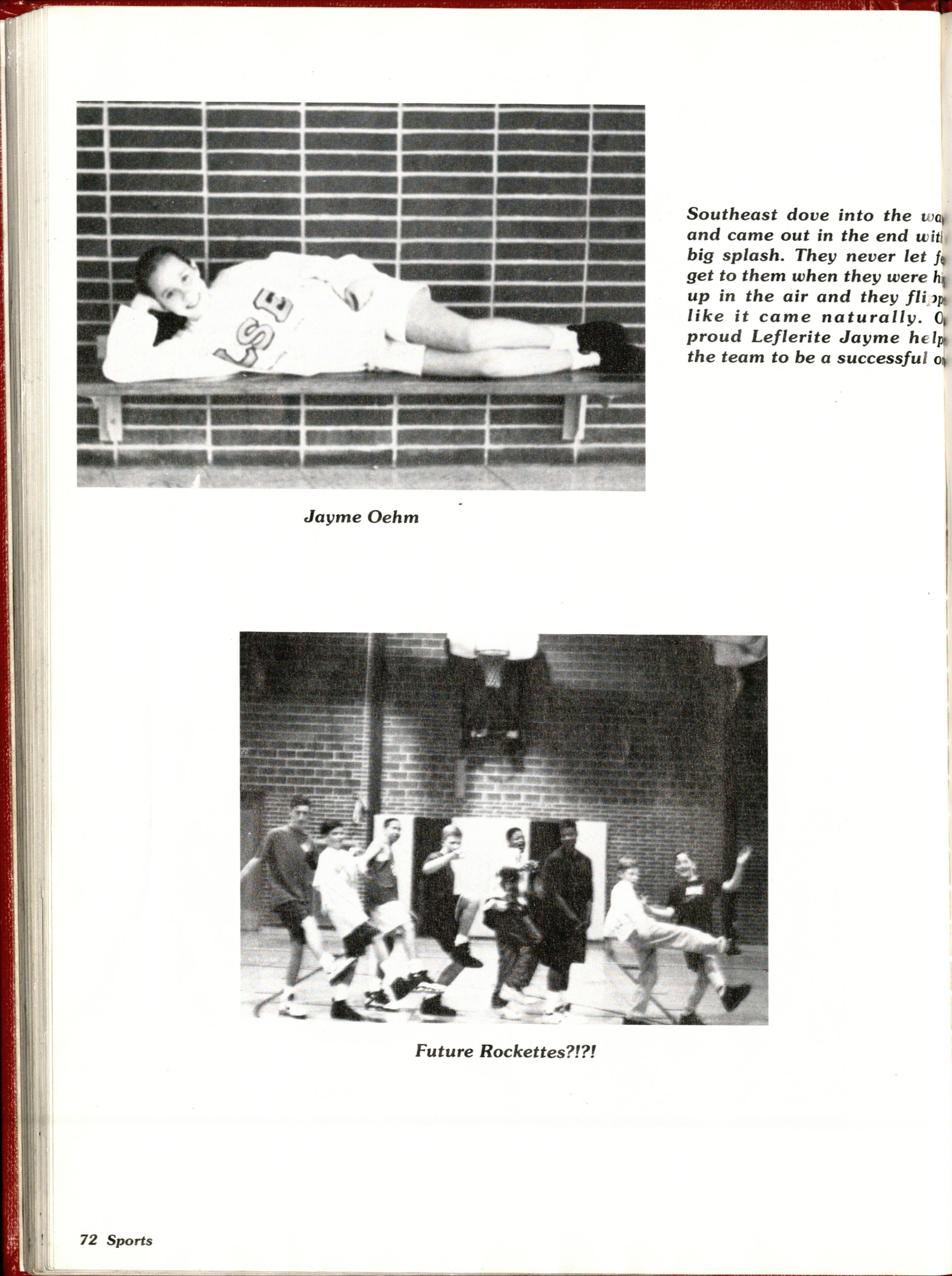 Southeast dove into the a and came out in the end wit! big splash. They never let j get to them when they were h' up in the air and they /Ii ;, like it came naturally. 0 proud Leflerite Jayme h e l the team to be a successfu l o