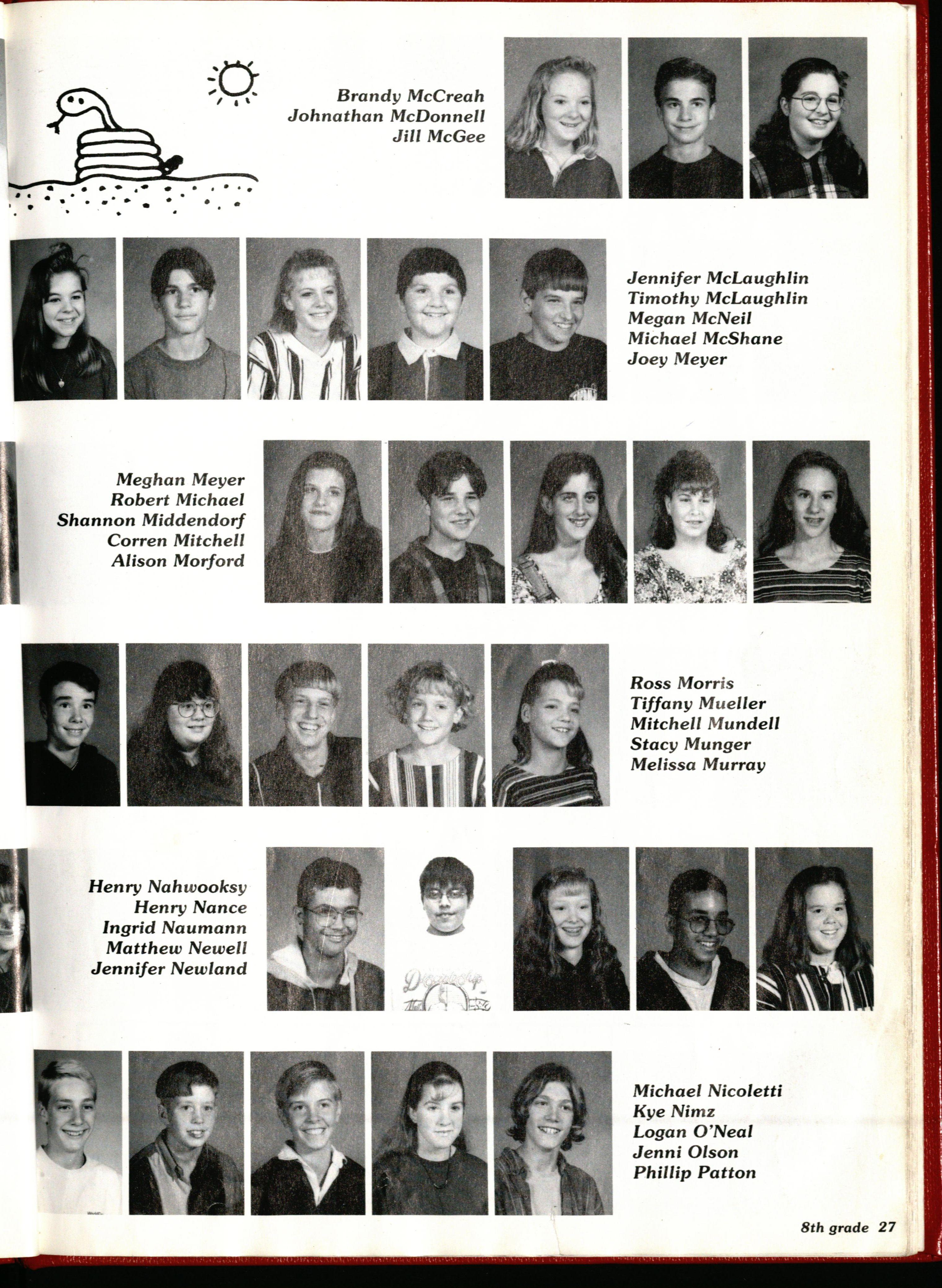 8th Grade 2nd Row: Lindsay Day, Amber Swain, Amanda Carlson, Brooke Stokke, Kelli Conley, Anna Dietrich, Erin Davis , Kendra Stauffer , Jeanine Danley, Darlene Stout. 1st Row: Rebekah Davis, Kristy Howell, Tricia Hatfield, Nicci Ellis, Holly Yardley, Rebecca Zieg, Elizabeth Leafty