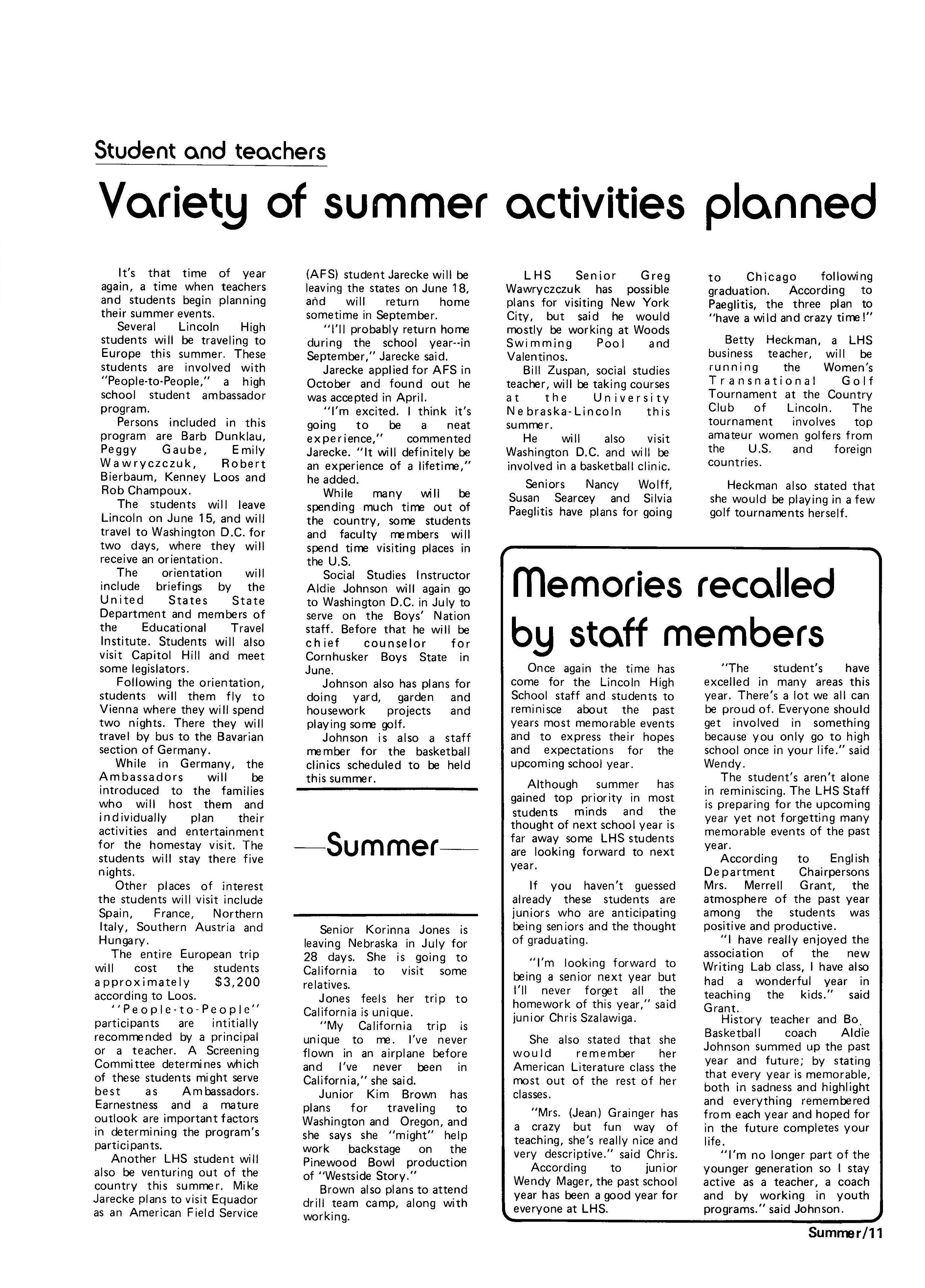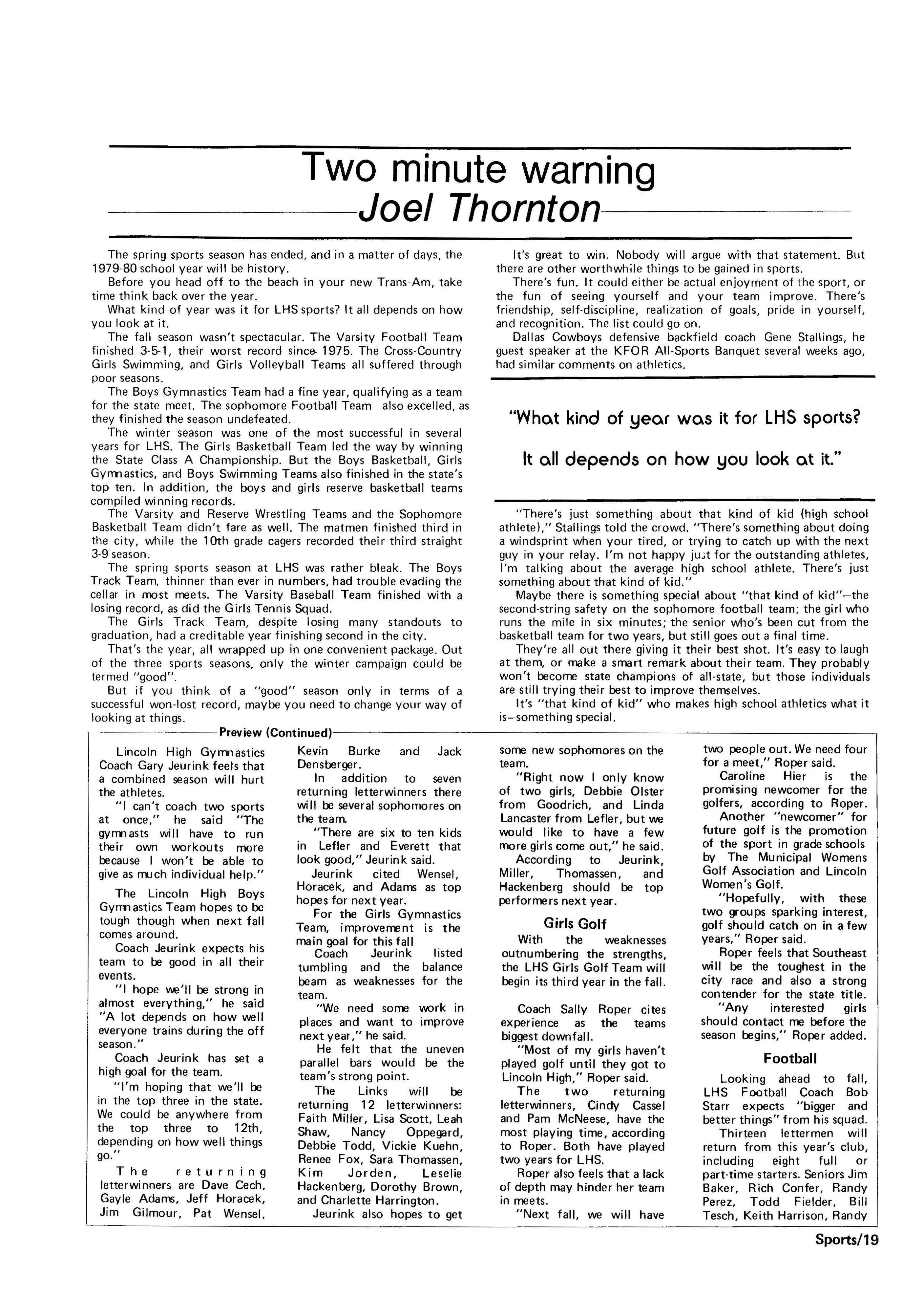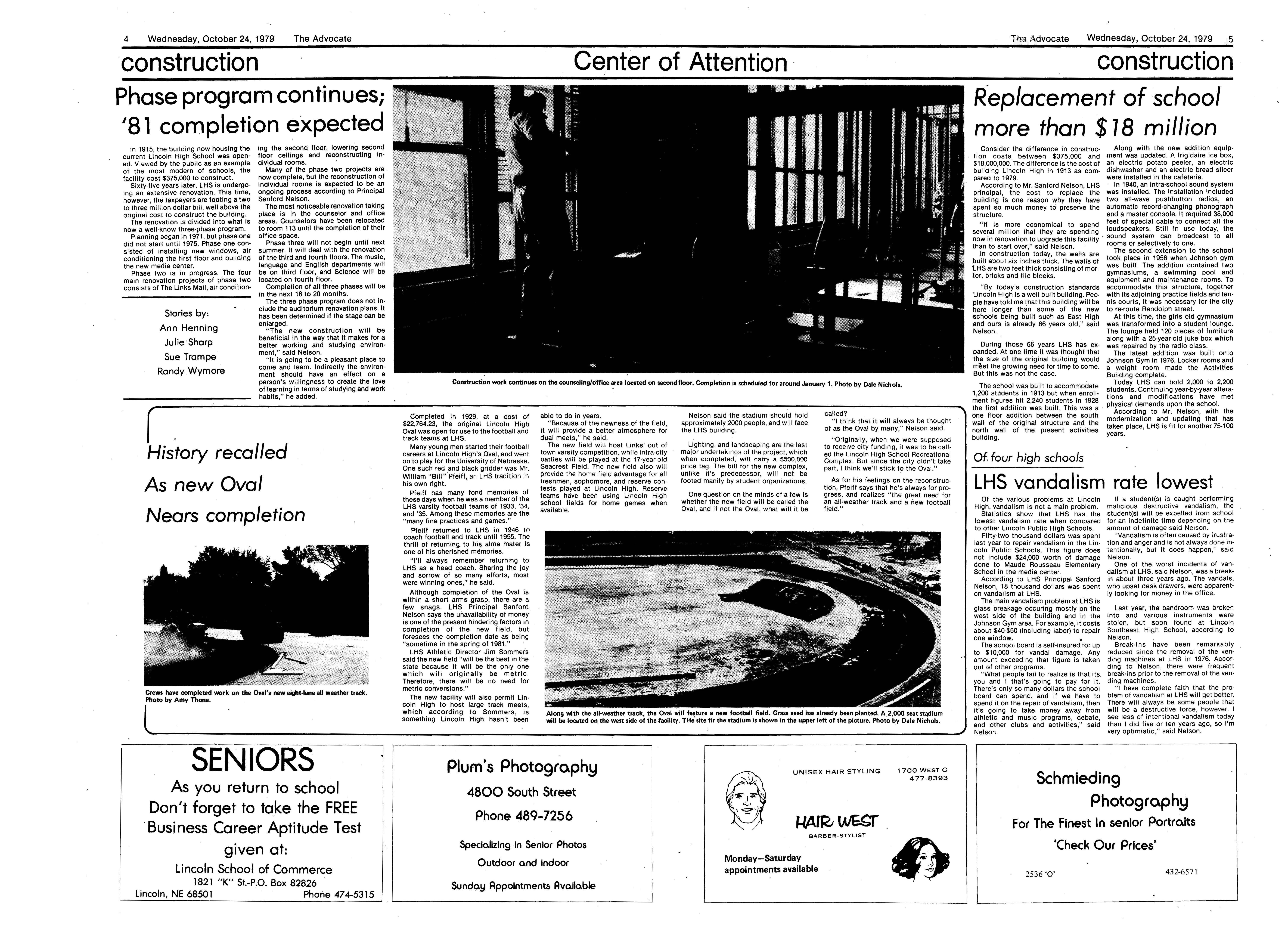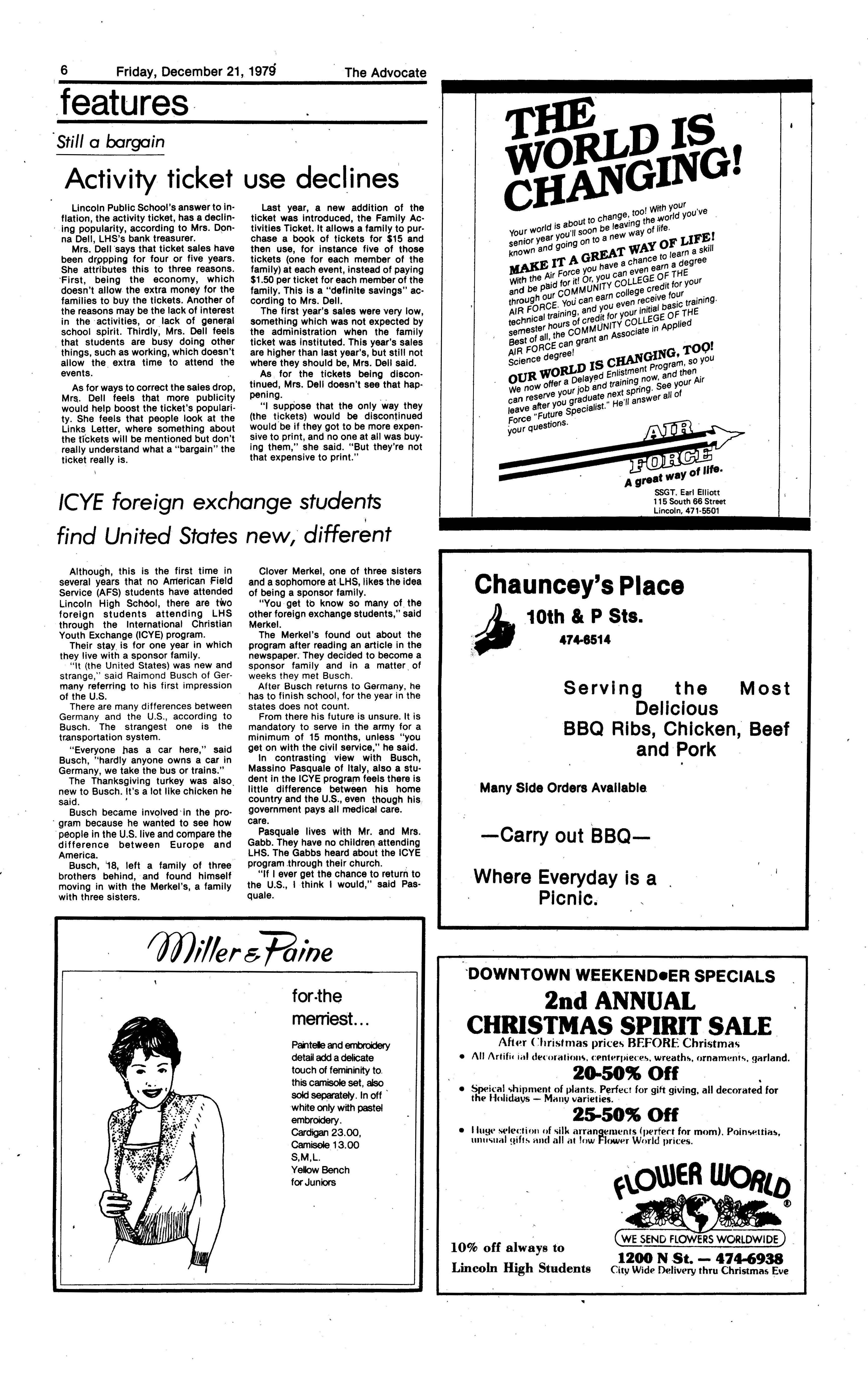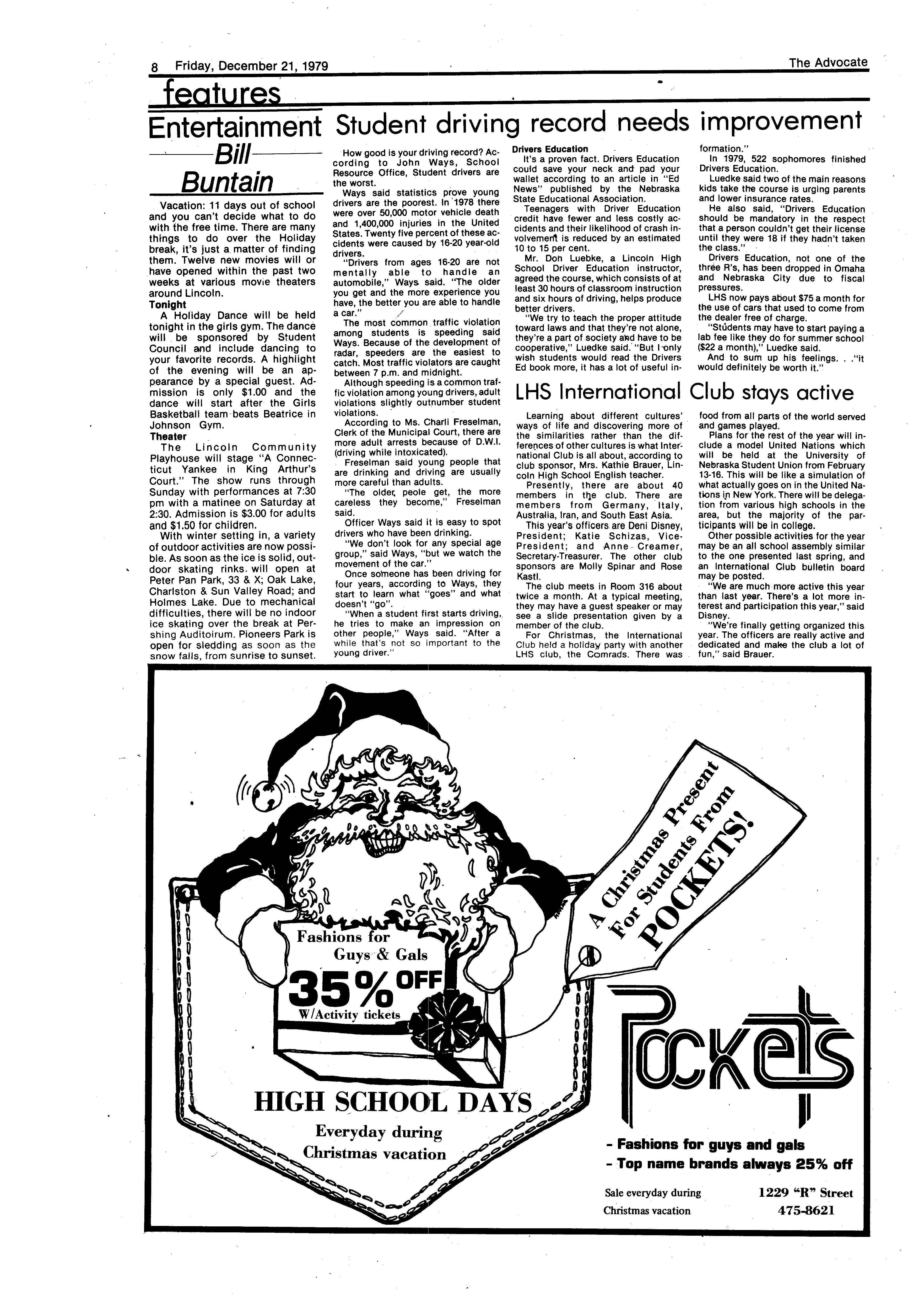 Edlte>r,· Ann Henning; Assistant Editor, Elizabeth Burden; Sports Editor, Joel Thornton; ·Layout Editor, Justine Johnson; Business. Managers, Mike Crosby, Randy Kobler; Writers, Marcella Maly, Julie Sharp, Sandy Speers, Sue lrampe, Lori l1rejo, Bill Buntain, John Ullman, Kelli Walin, Randy Wymore; Photographers; Dave Bourke, Gary Jorgens, Dave Nichols, Steve Pieper, Steve Harper; Artist, Mitch McKeown; Advisors,Mr. Lee Johnson, Ms. Teri Bigelow; Principal, Mr Sanford Nelson~ · The Advocateis published twelve times each • school year by the Publications Department of Ll ncoln High School. Advertising rates are based on a sliding scale from $2.25 per-column- • inch to $1.75 per-column-inch; mailing address: Lincoln High School, 22 and J Streets, Lincoln, Ne., 68510; phone 477-8755. I