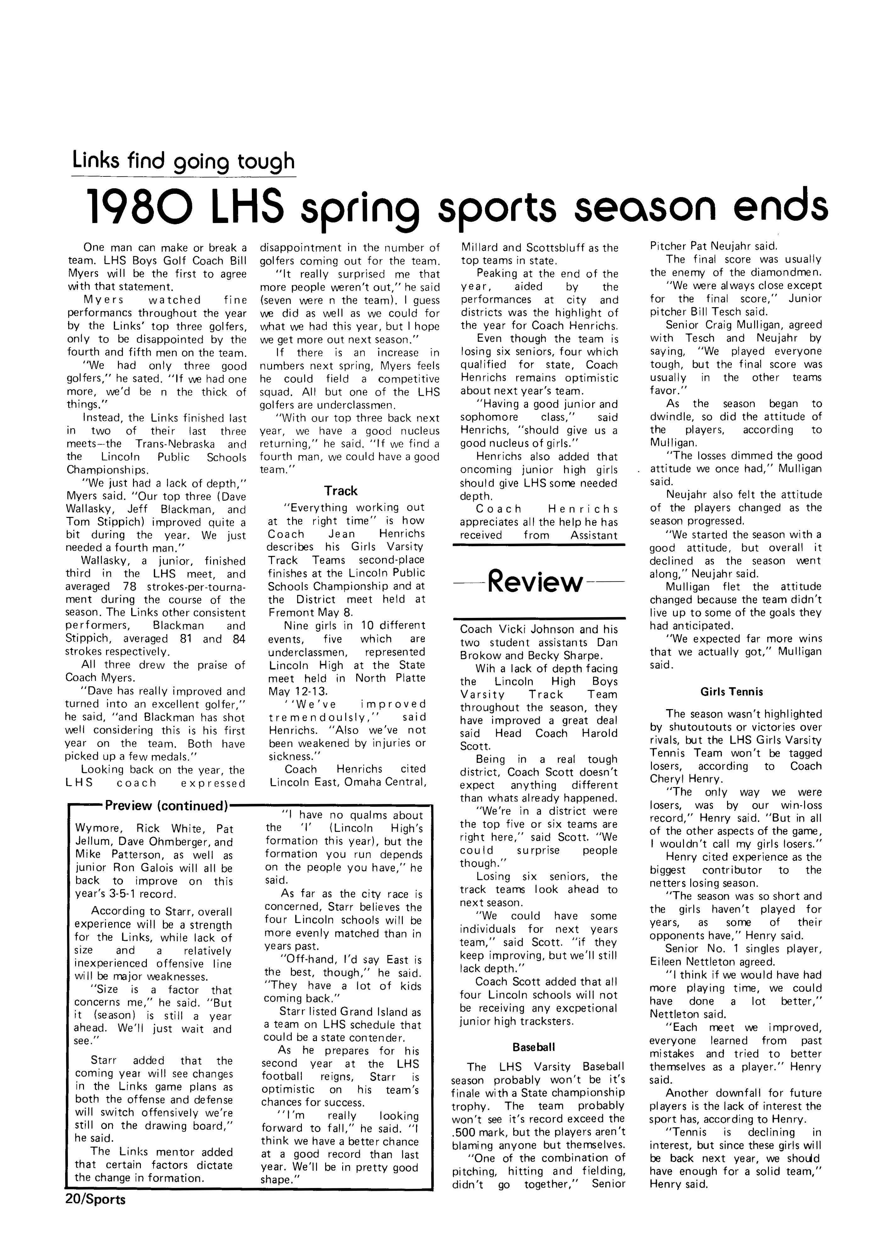 If there is an increase in numbers next spring, Myers feels he could field a compet1t1ve squad. Al I but one of the LHS golfers are underclassmen.
