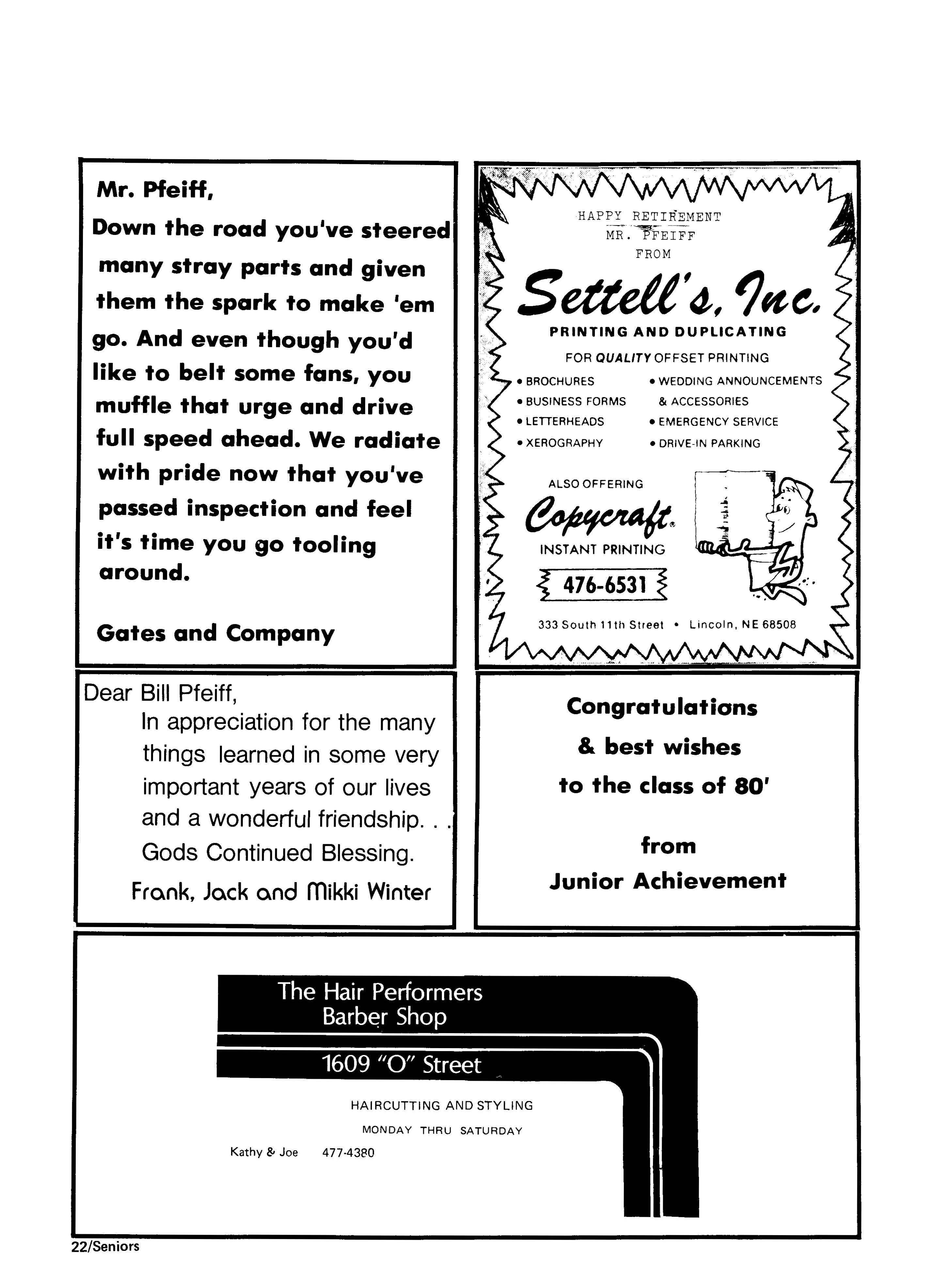Thank you for your many years of service devote1d to making Lincoln and Lincoln High a better place to live. I am honored to
