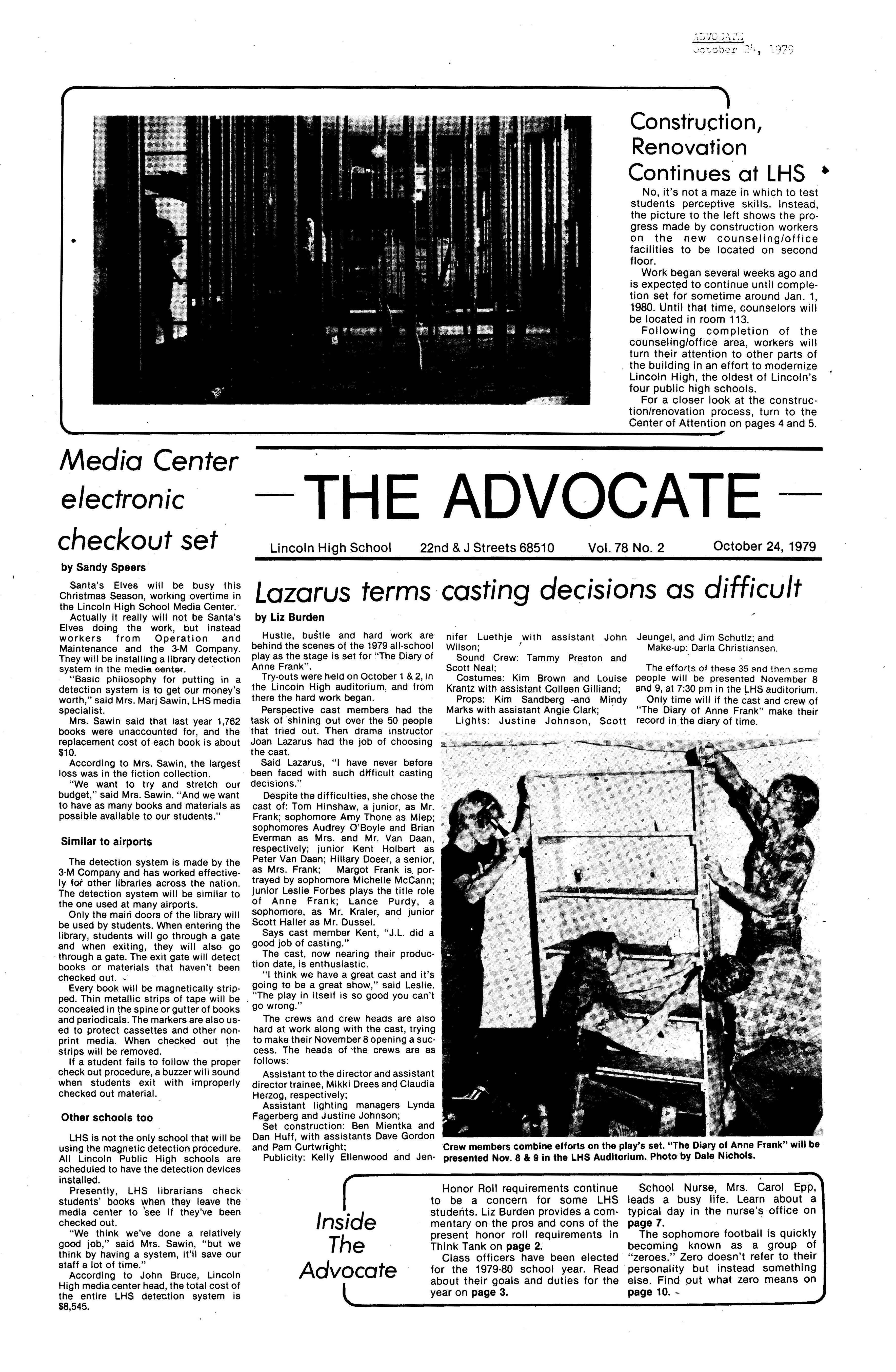 Last year's Advocate received a first class rating by Quill and Scroll, an international · honor society for high school journalists.We are striving to accomplish the h.gh rating again this year, while giving our readers high quality coverage of events and activities at Lincoln High School.