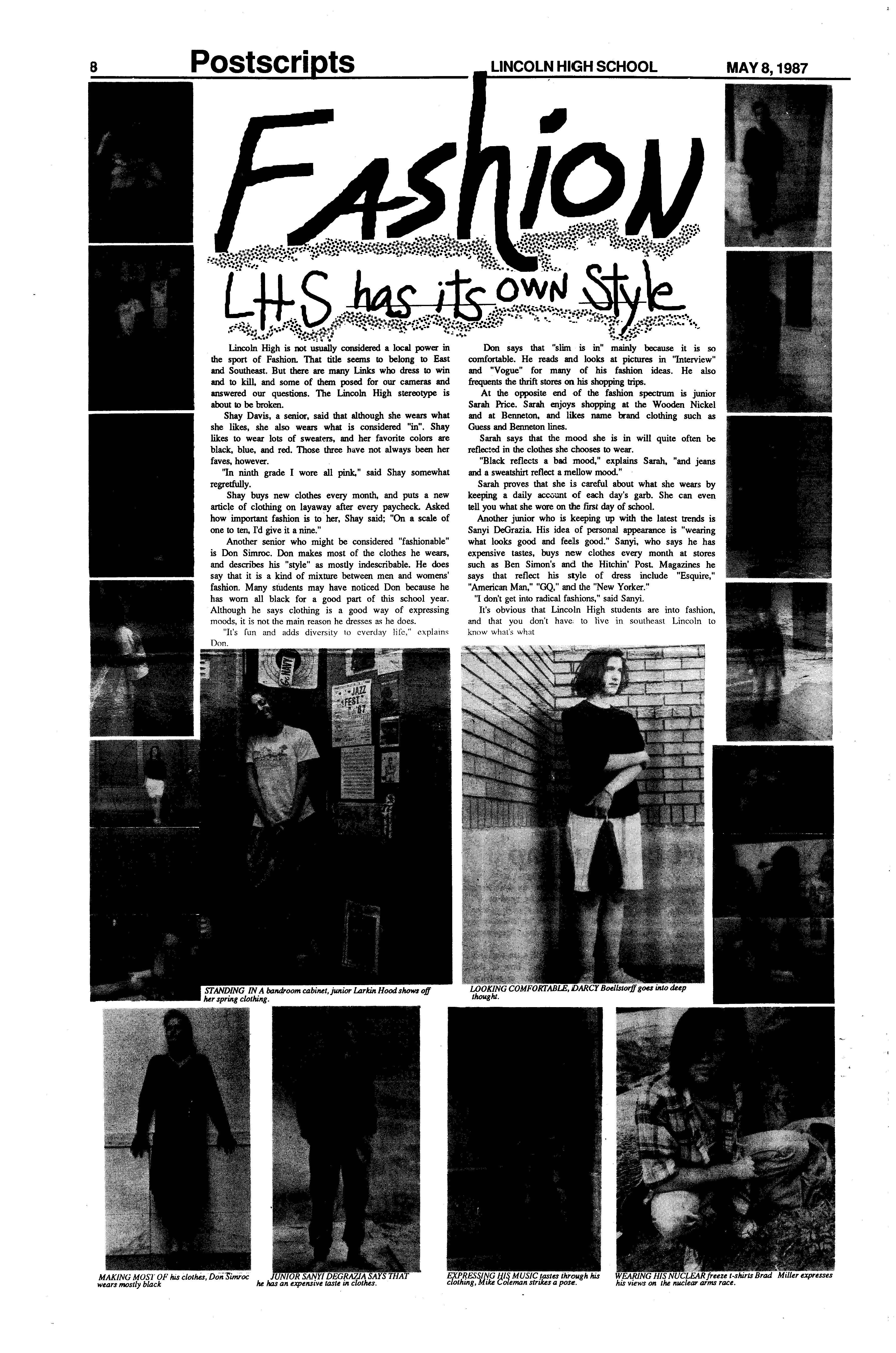 Lincoln High is not usually considered a local power in the sport of Fashion. That title seems to belong to East and Southeast. But there are many Links who dress to win and to kill, and some of them posed for our cameras and answered our questions. The Lincoln High stereotype is about to be broken.