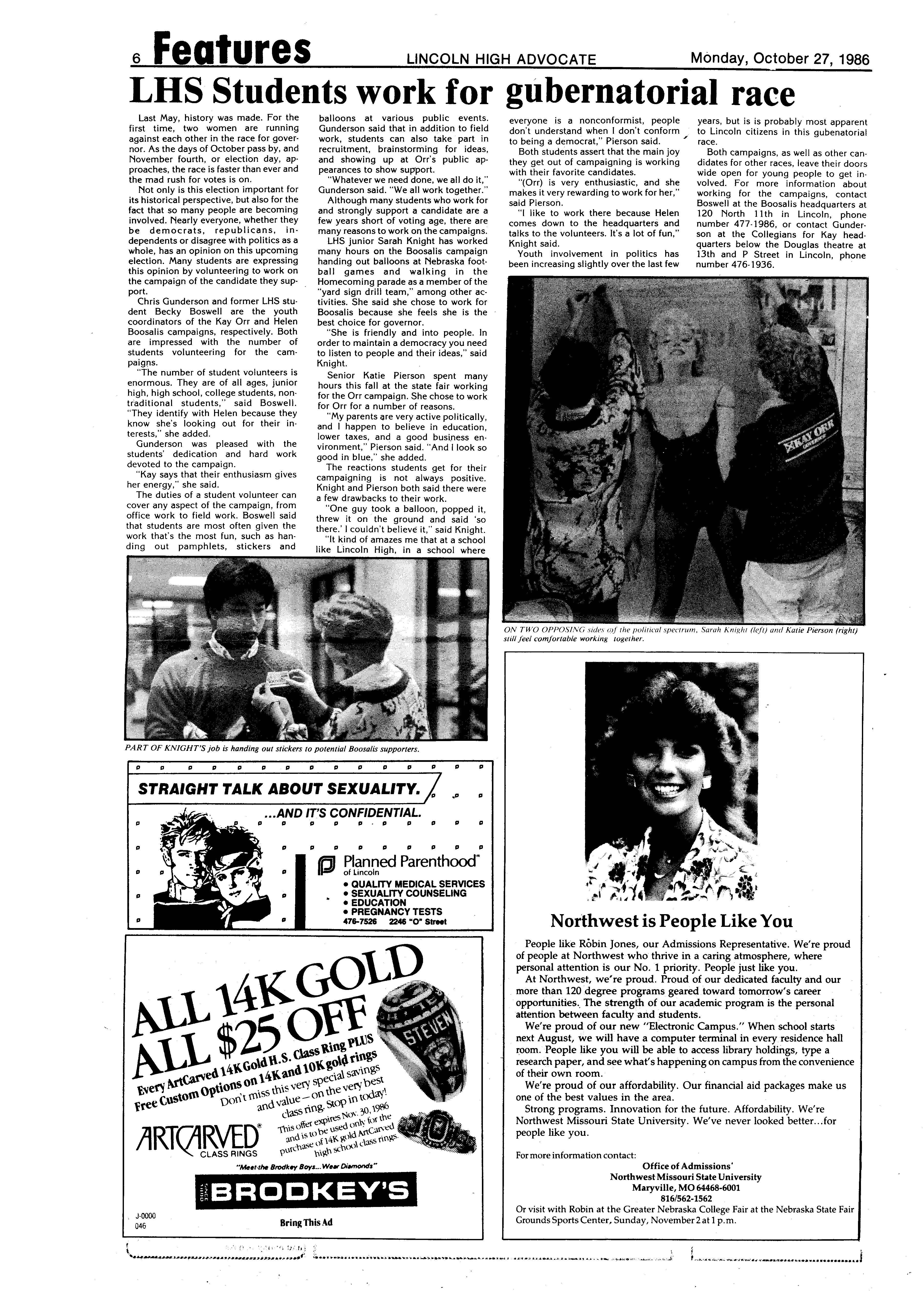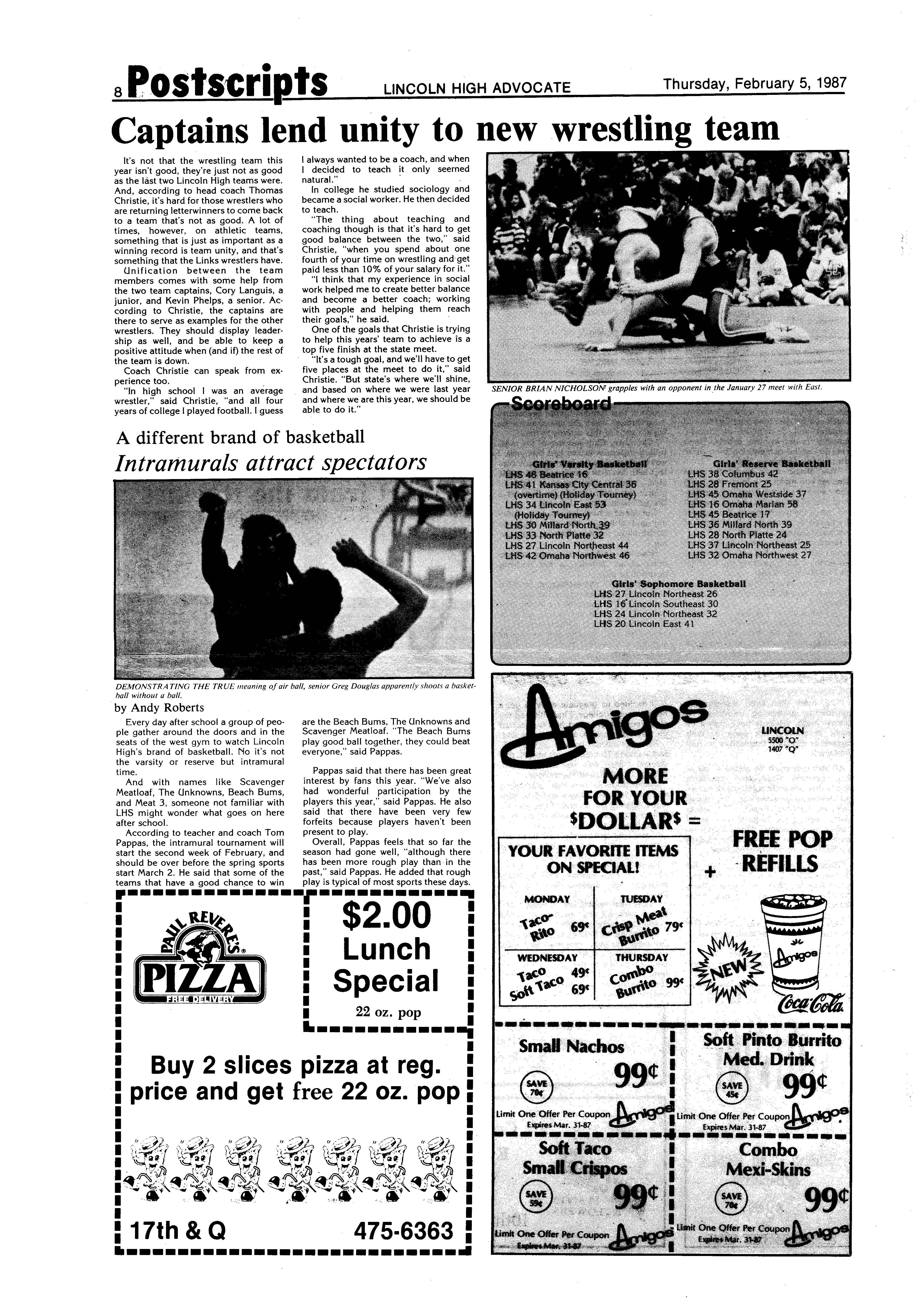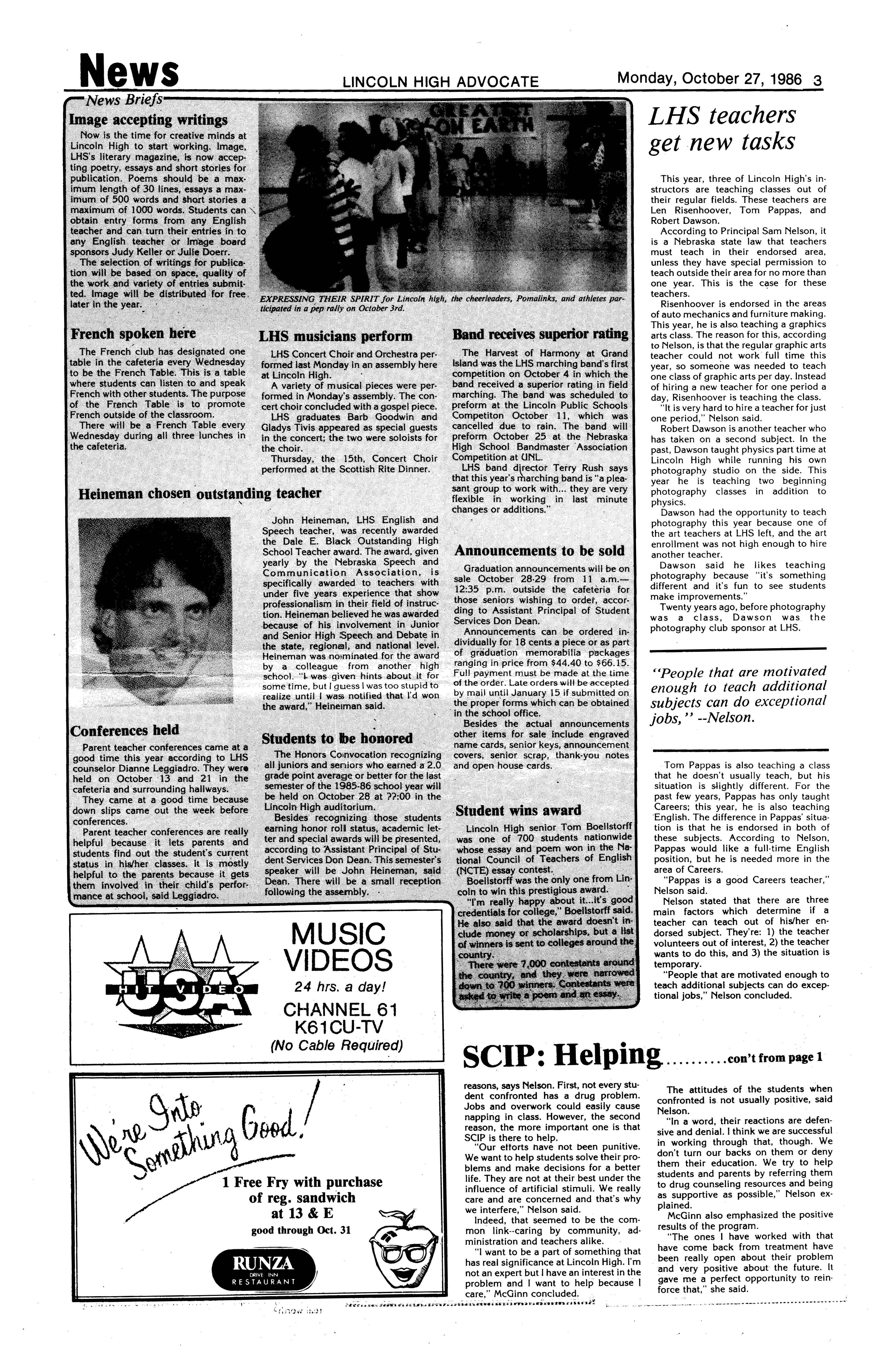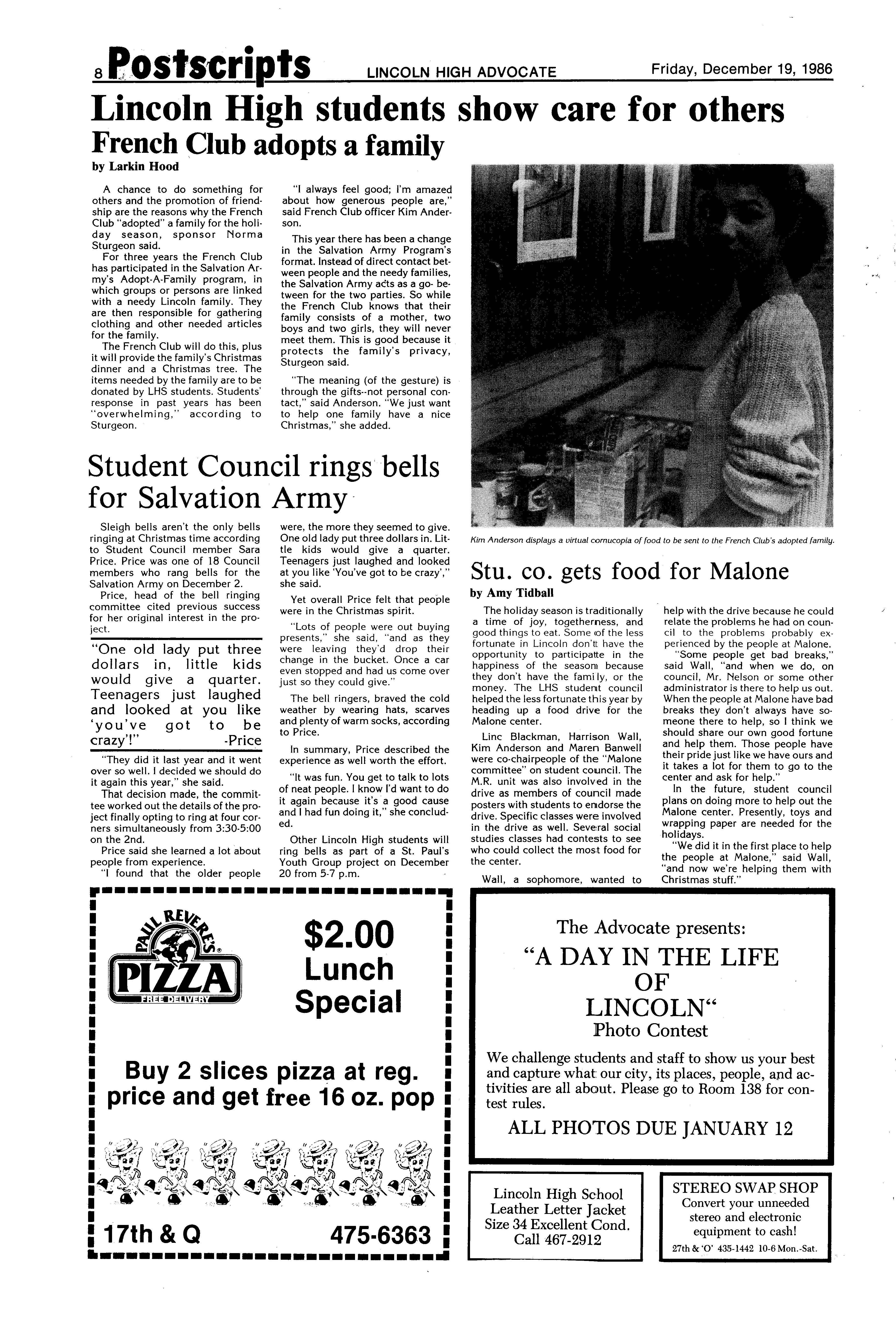 On behalf of the '86-'87 Advocate staff I would like to welcome you to a new year at Lincoln High. This year promises to be full of many fascinating events, and as usual we at the Advocate will be there to cover thenn as they happen. ·