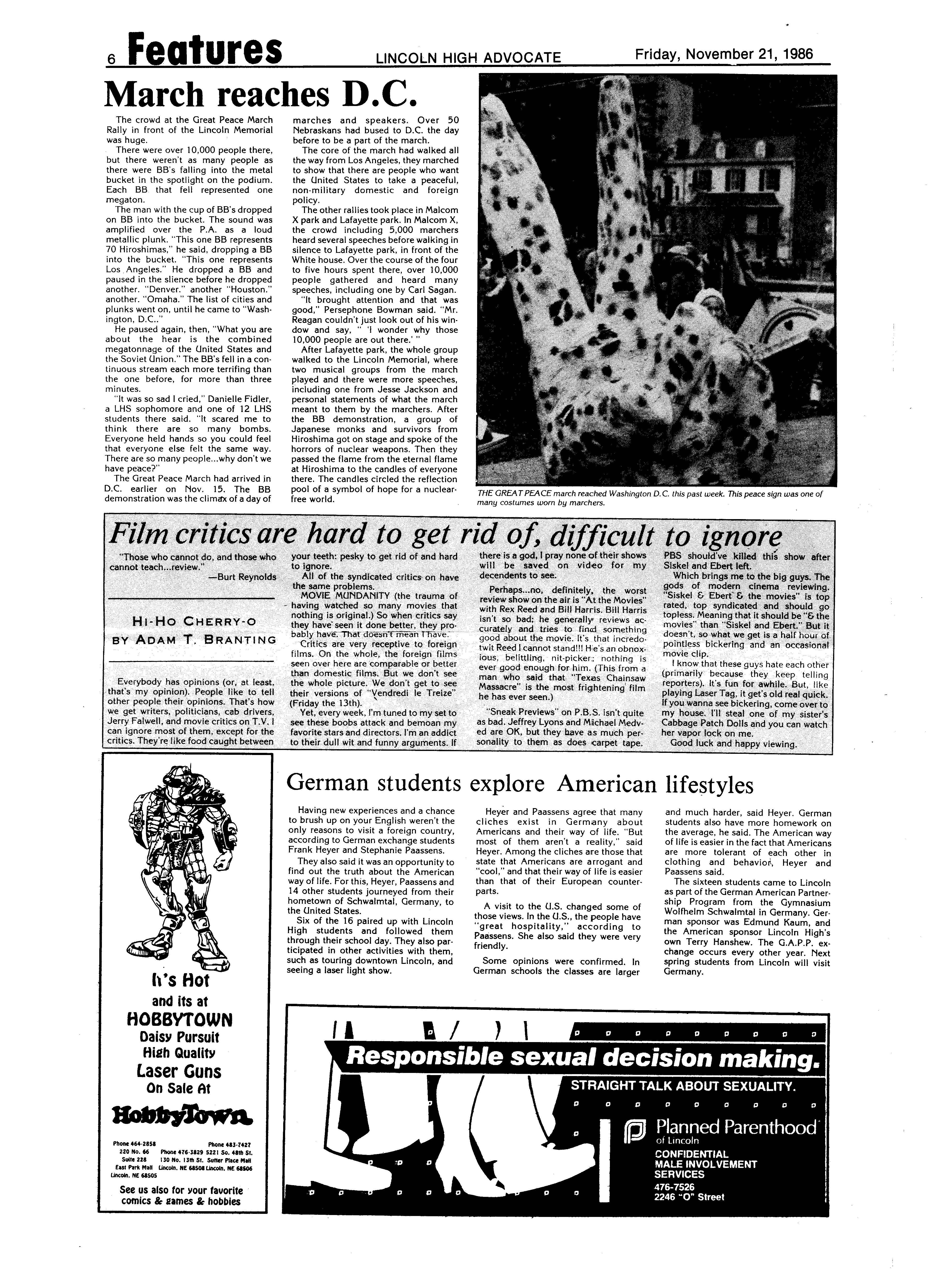 The Great Peace March for Global F'iuclear Disarmament passed through Lincoln this summer. It gave many students an opportunity to show how they felt about the arms race by giving them a chance to join in the march.