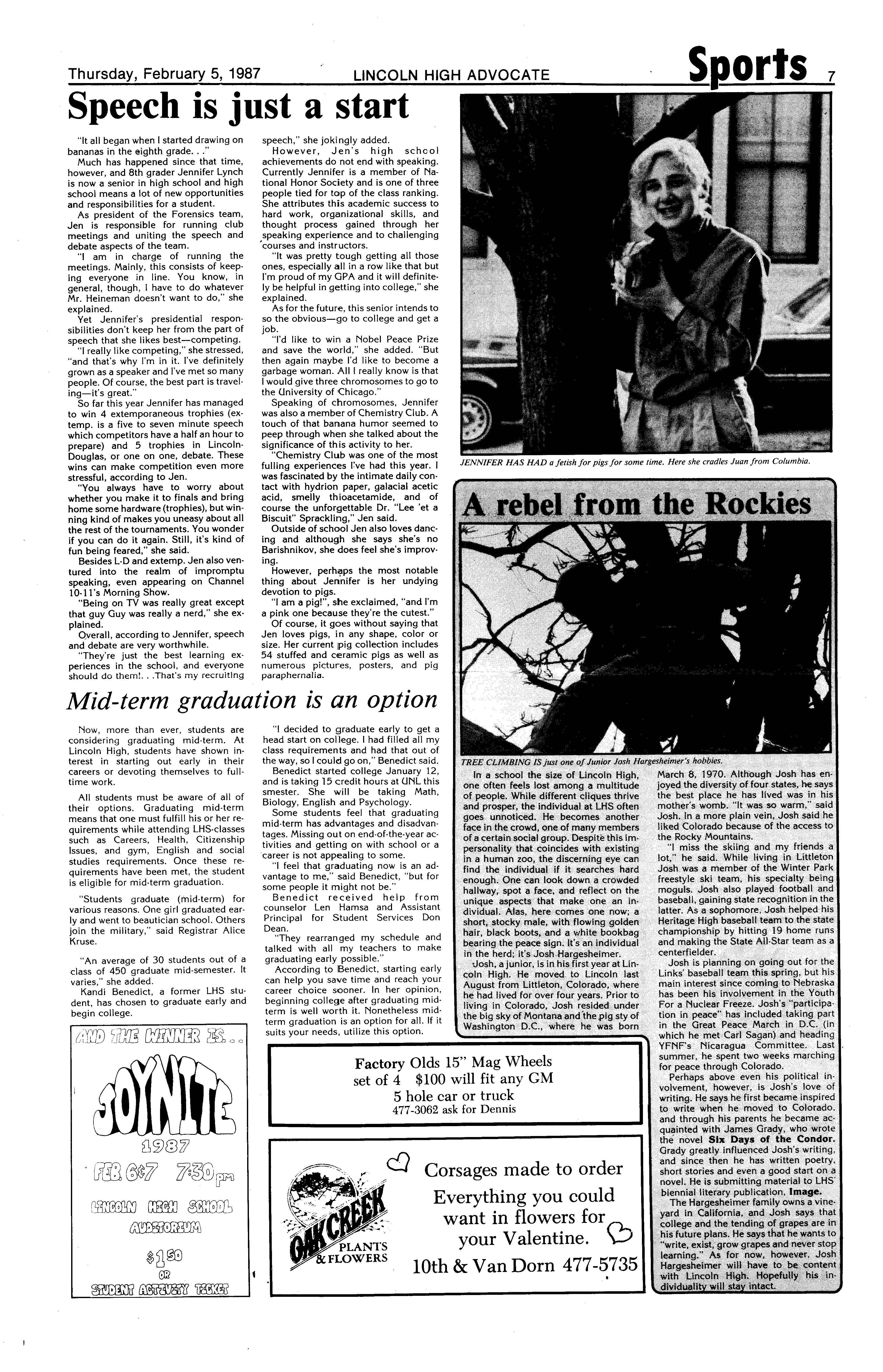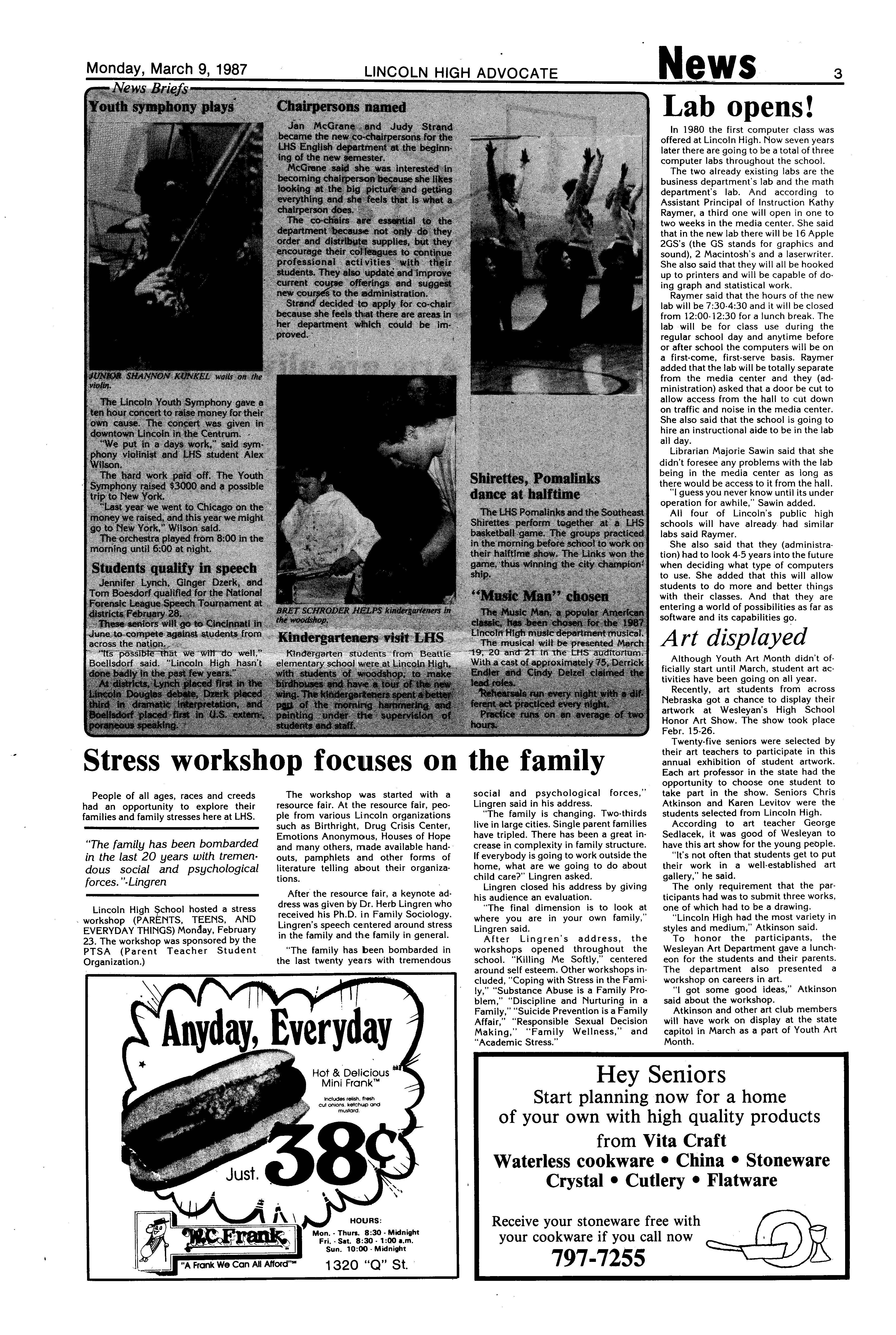 said. Besides Neil Peart, Brad thinks that Lincoln High is awesome as well. He said he's had a lot of fun the three years he has been here, and Lincoln High has helped him to discover himself. "It has been fun being able to go out to lunch, especially. It gives me a chance to get away from all the hustle· and bustle of school and have some freedom," Brad said, ''But band and Student Council
