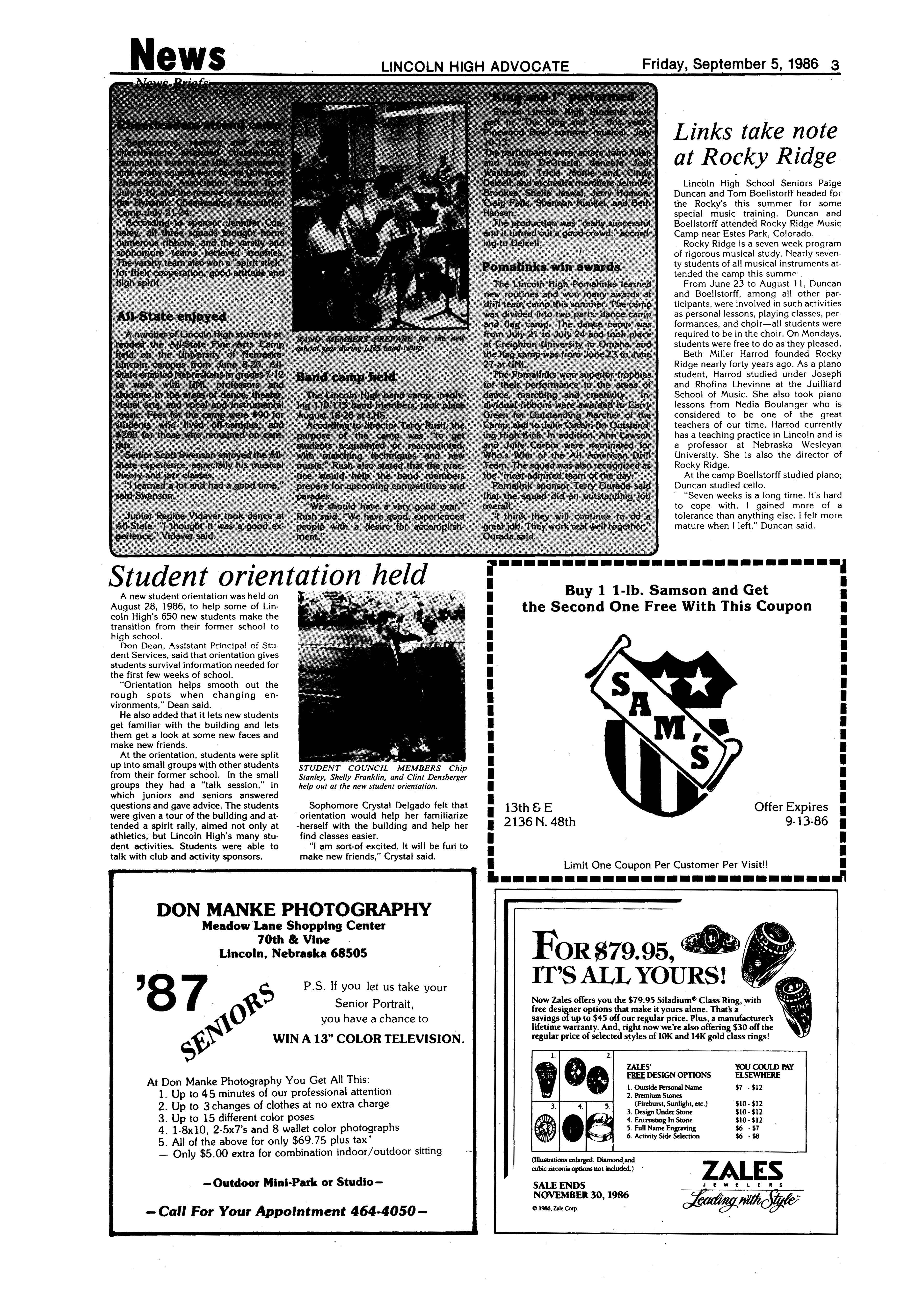 A new student orientation was held on August 28, 1986, to help some of Lincoln High's 650 new students make the transition from their former school to high school.